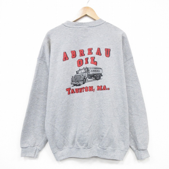 【商品名】 XL★古着 リー Lee 長袖 スウェット メンズ 00年代 00s タンクローリー 大きいサイズ クルーネック グレー 霜降り