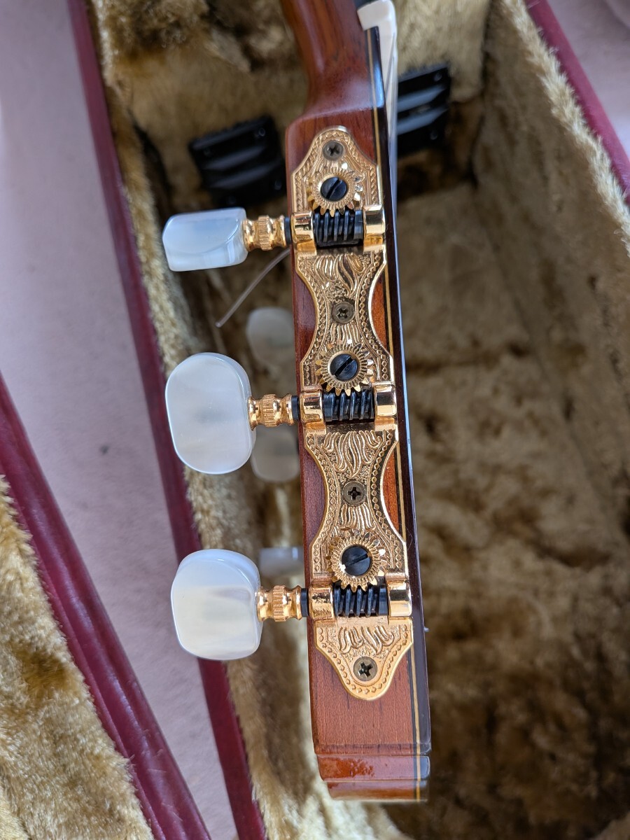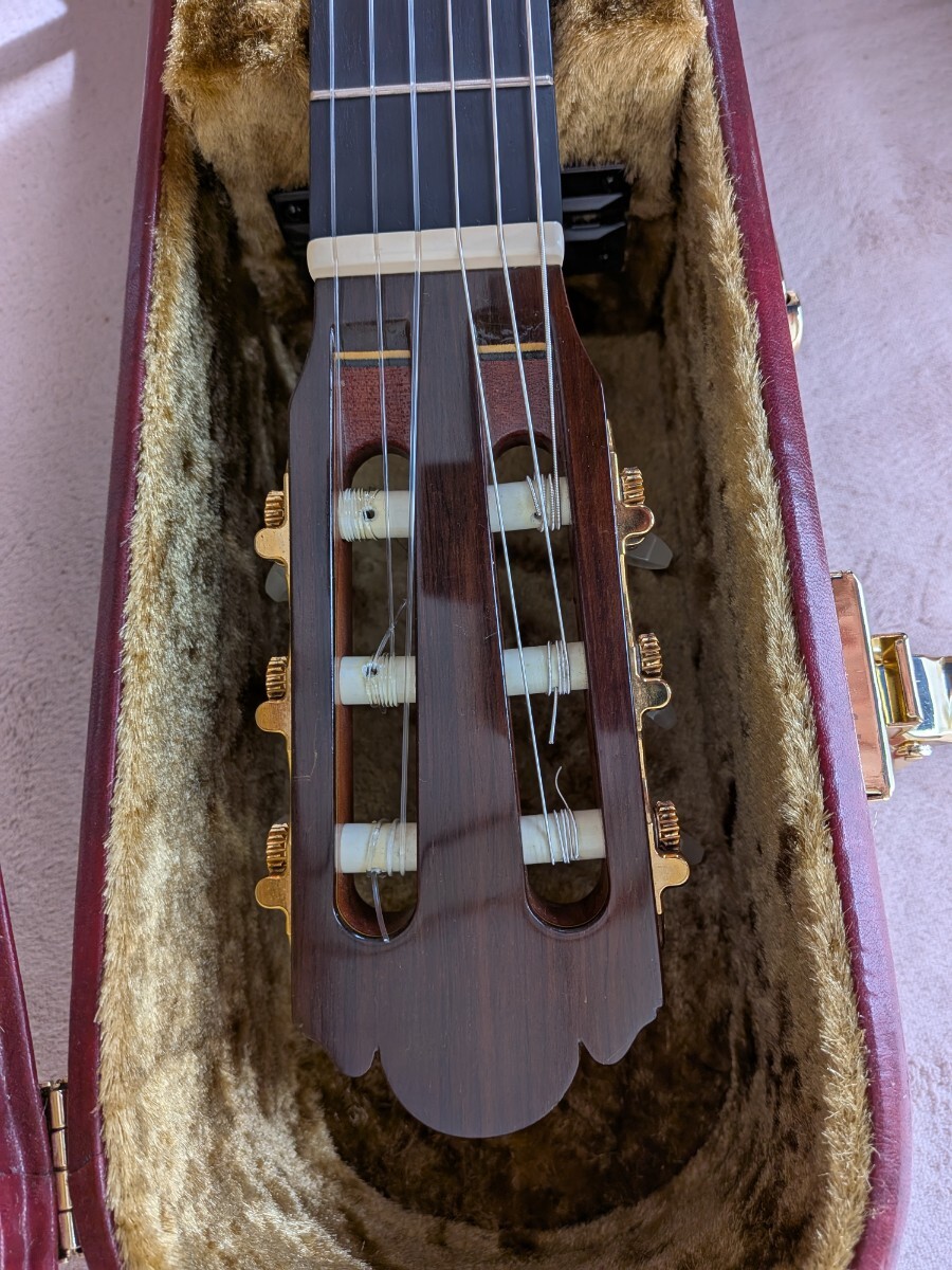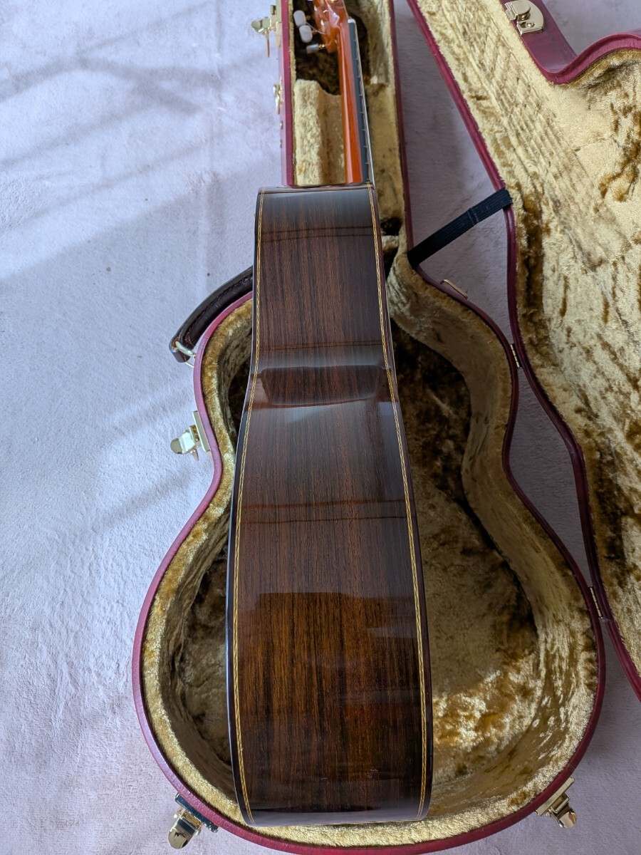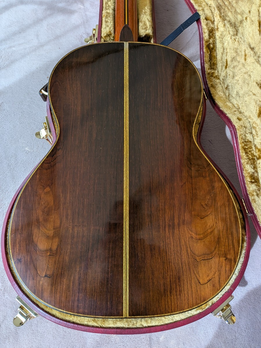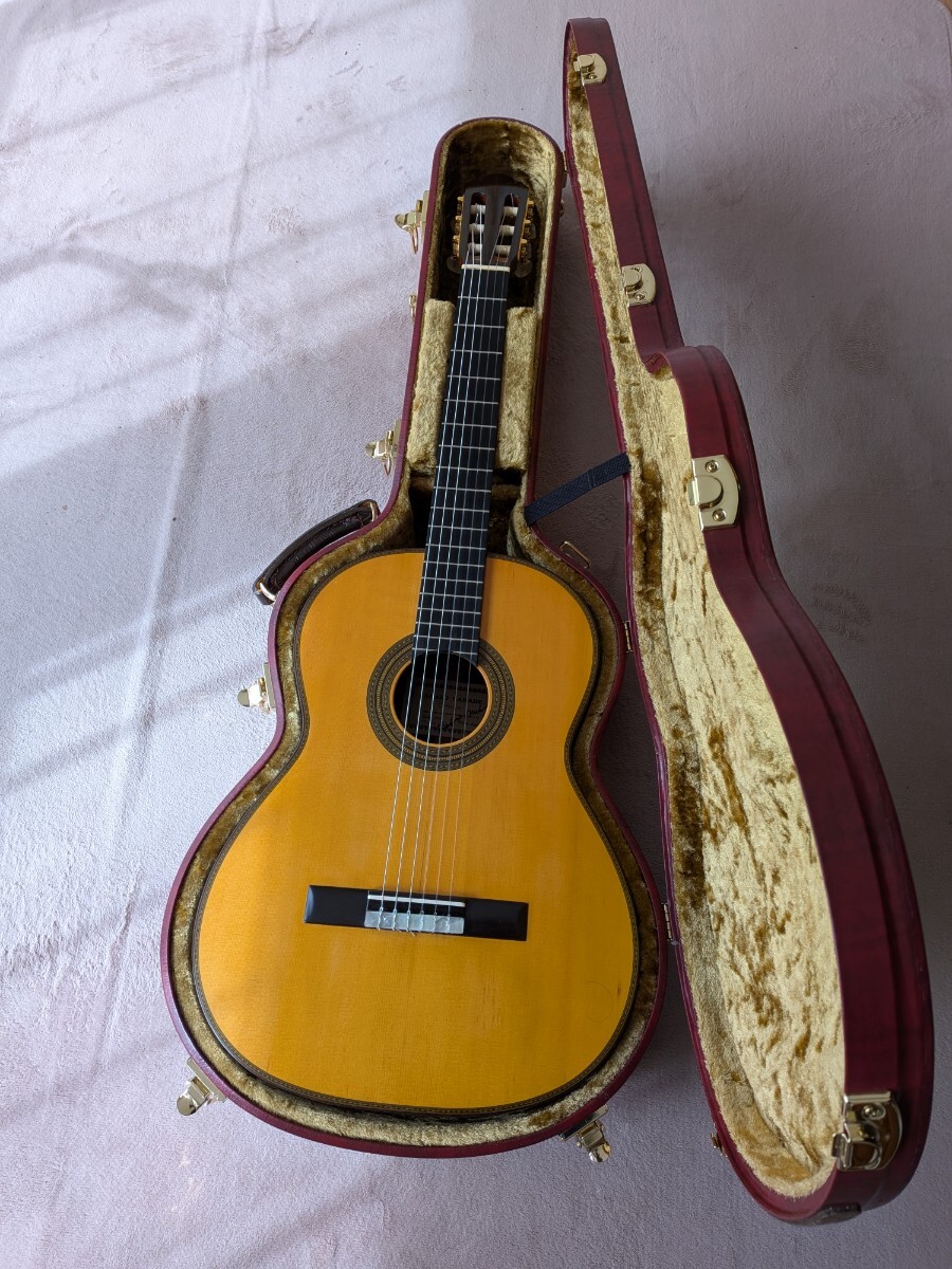 全体的に目立つ傷も無く良好な状態ですが、サウンドホールからブリッジまで中央に塗装の割れが在ります。よく見ないとわからないくらいです。ペグ(5弦)に割れの修理跡が在ります。弦長が短く弾きやすいギターです。ハードケースに入れて、プチプチで梱包して発送します。尚、送料は当方にて負担します。
