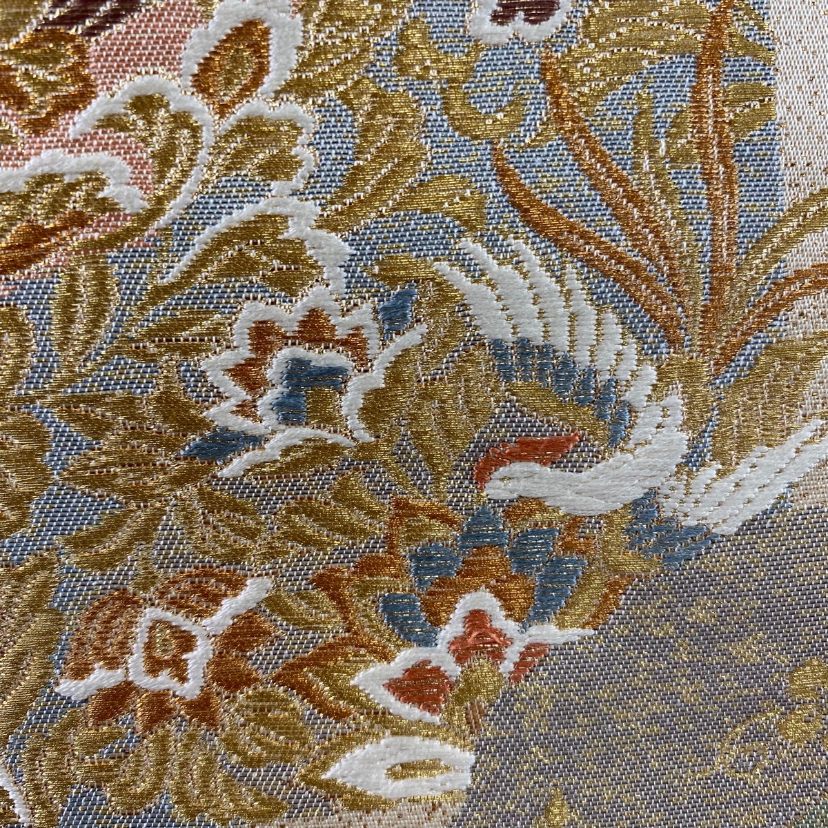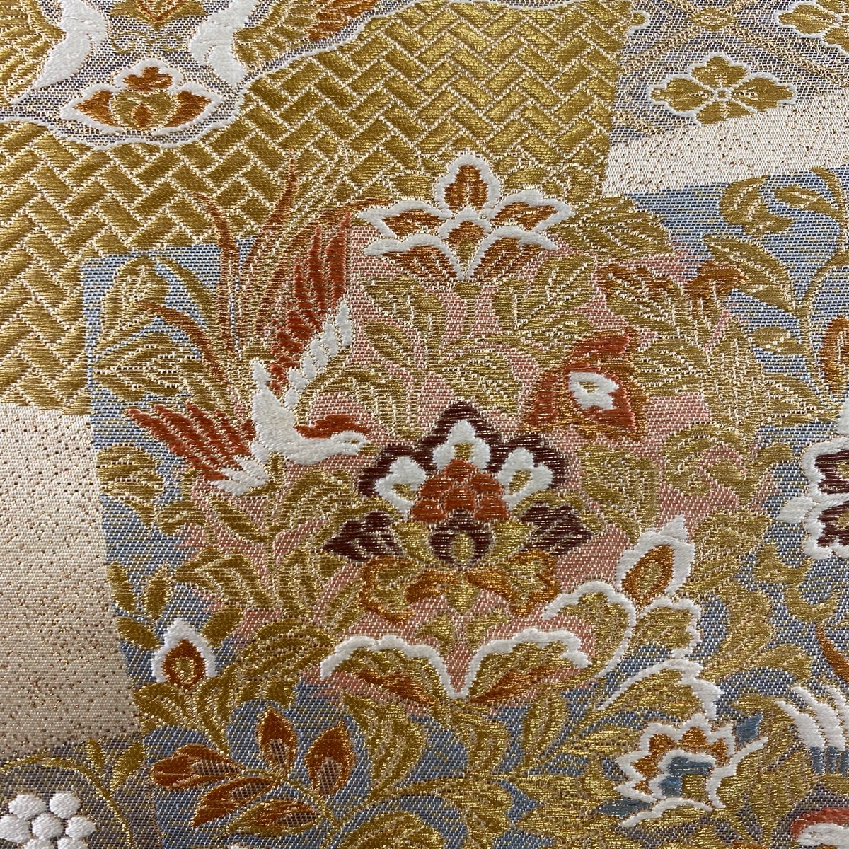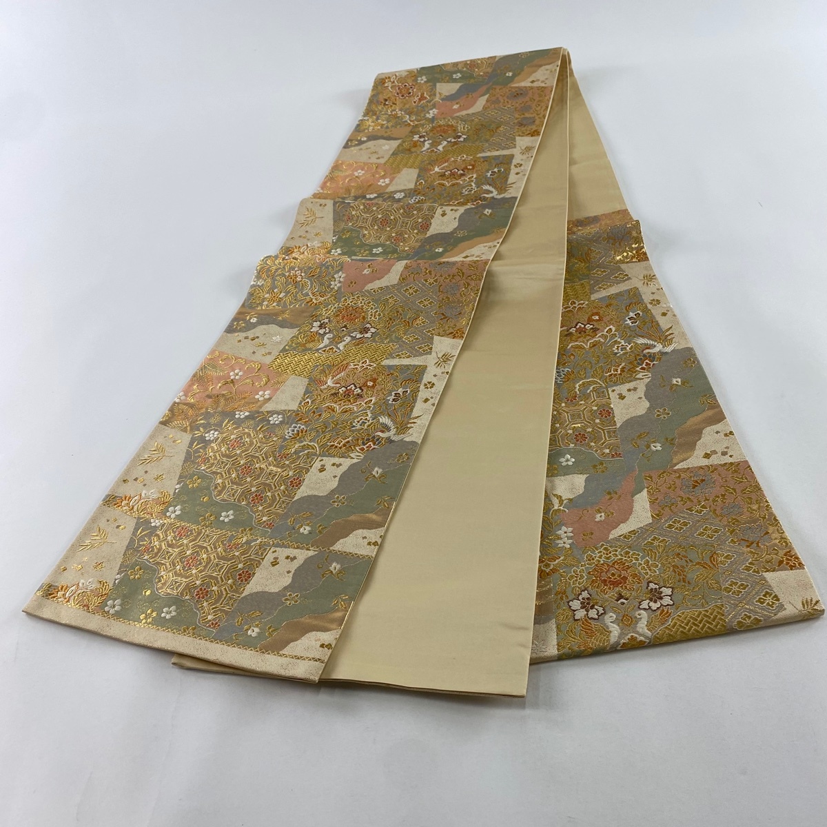| 袋帯 美品 秀品 関西仕立て 色紙 向かい鳥 金糸 箔 ベージュ 六通 正絹 【中古】 |