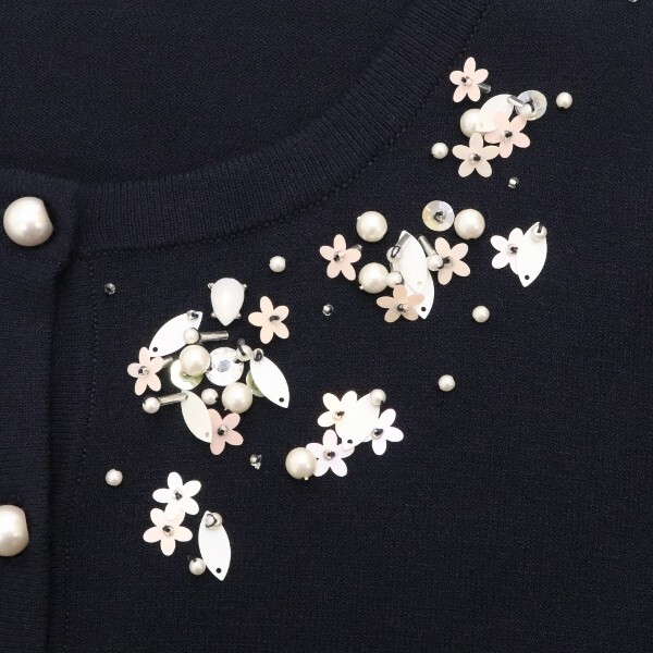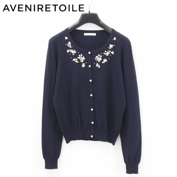 | 【KA258】美品◆AVENIRETOILE アベニールエトワール フラワースパンコール パール釦 ニット カーディガン トップス 紺 ネイビー 38 | |