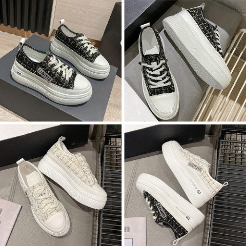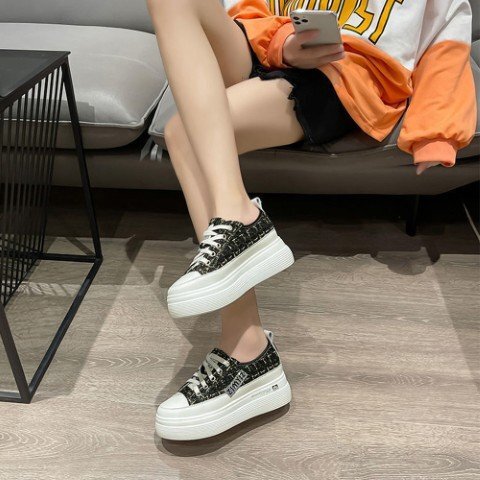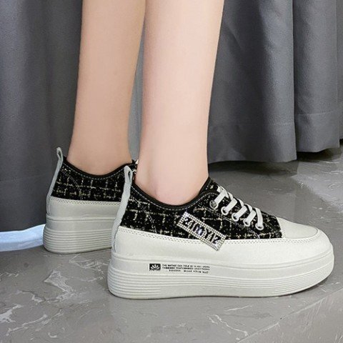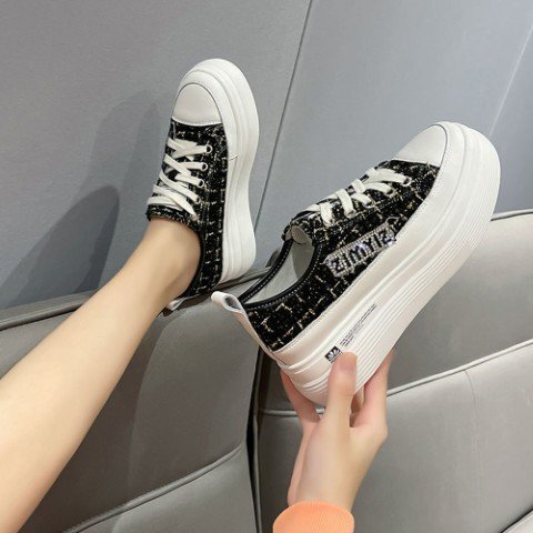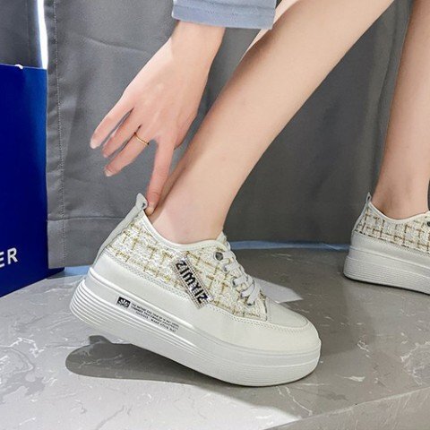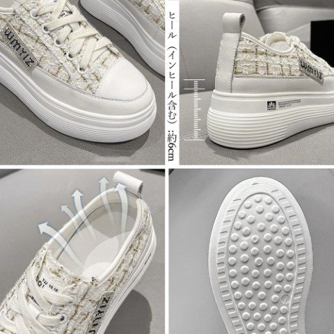 カジュアルながらも表情のあるツイード素材で高見え、トレンド感満載で目を引くレディーススニーカー
