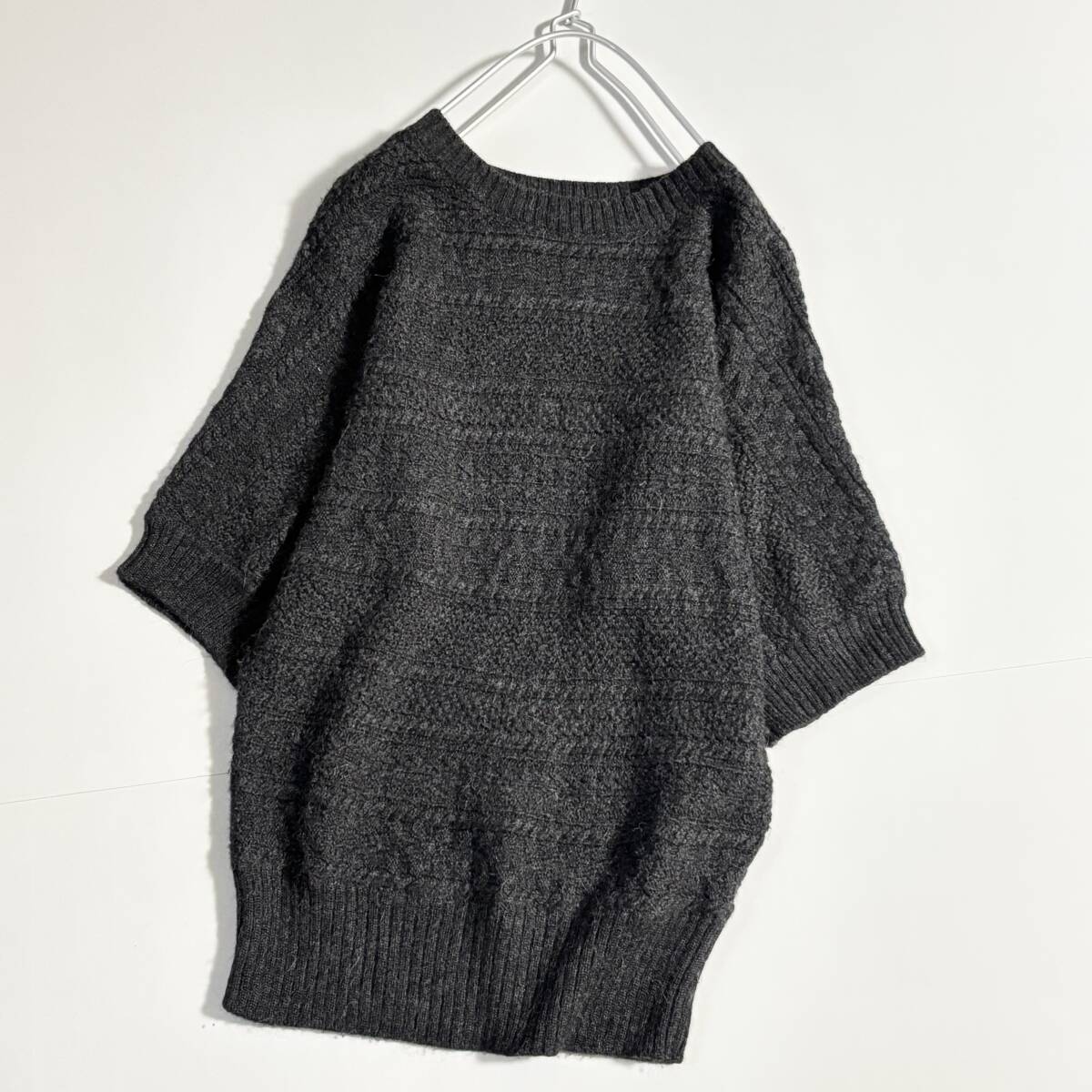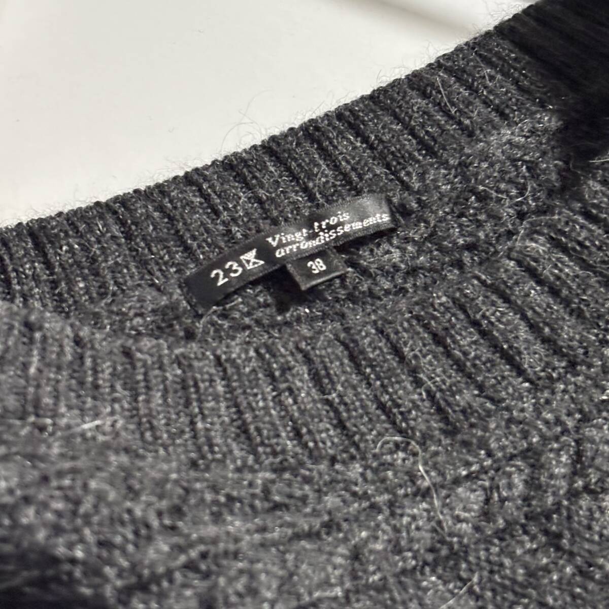 オンワード樫山 23区 サイズ38 // アルパカミックス グレー系ケーブル・縄編み ロングニット ニットチュニック ⑥
