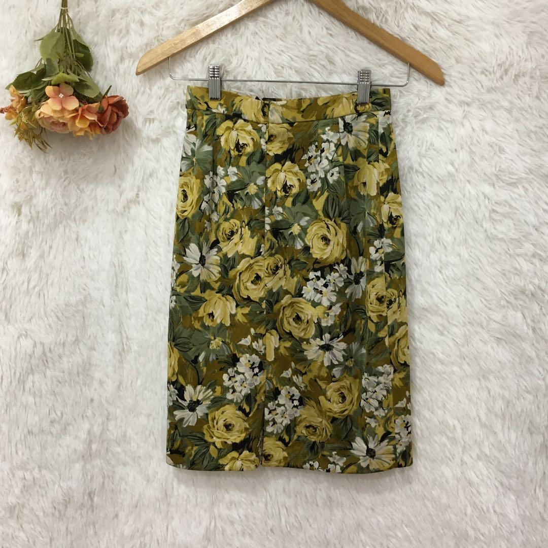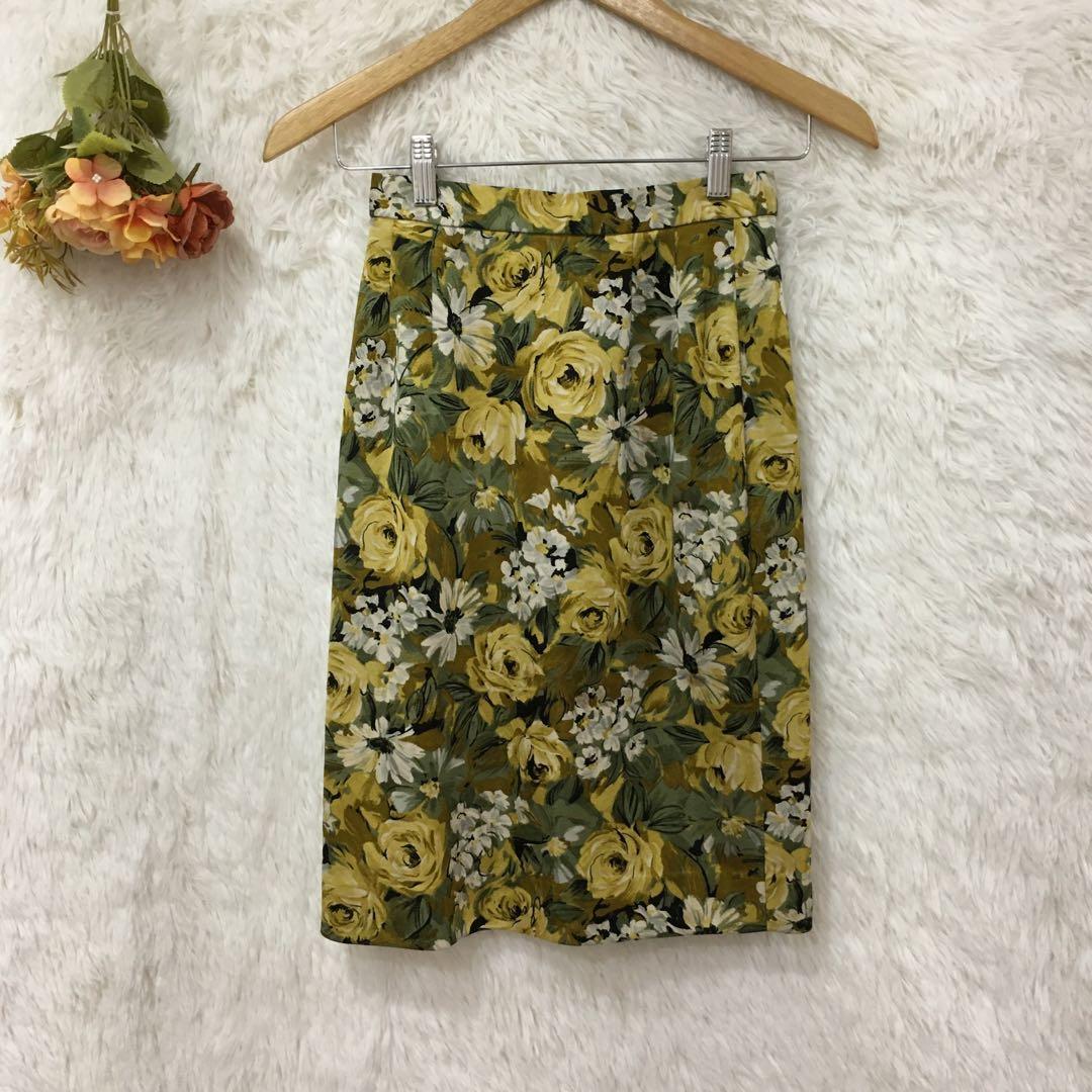 ★ROPE'★ロぺ 花柄 タイトスカート 【S】 膝丈 上品 エレガント 黄色