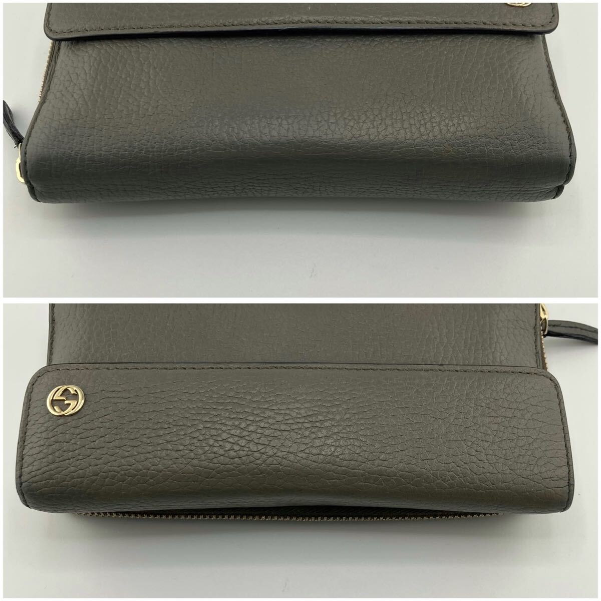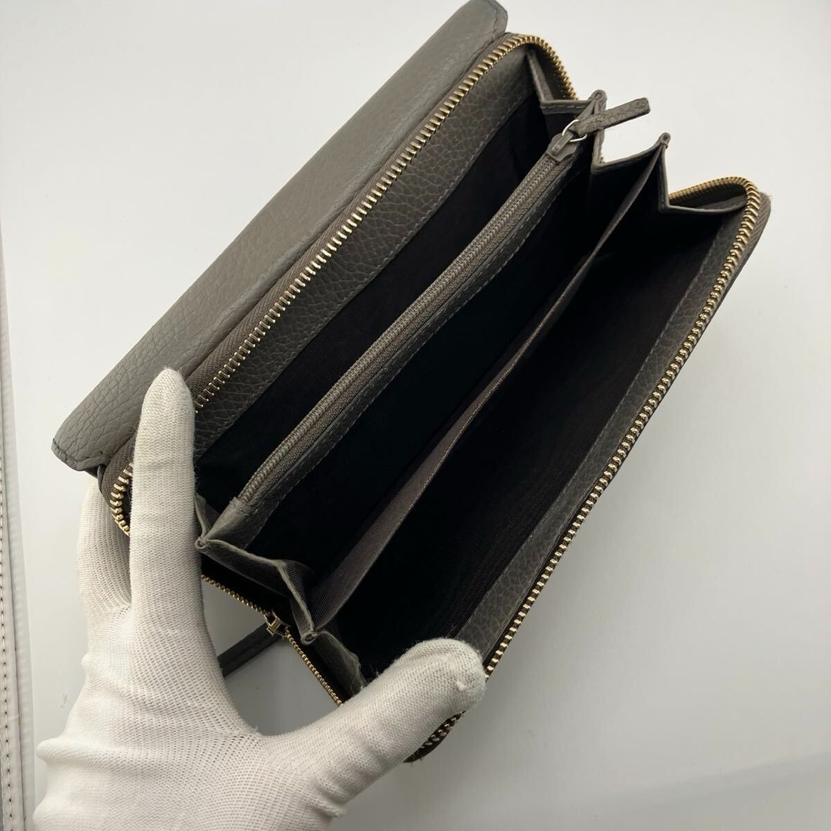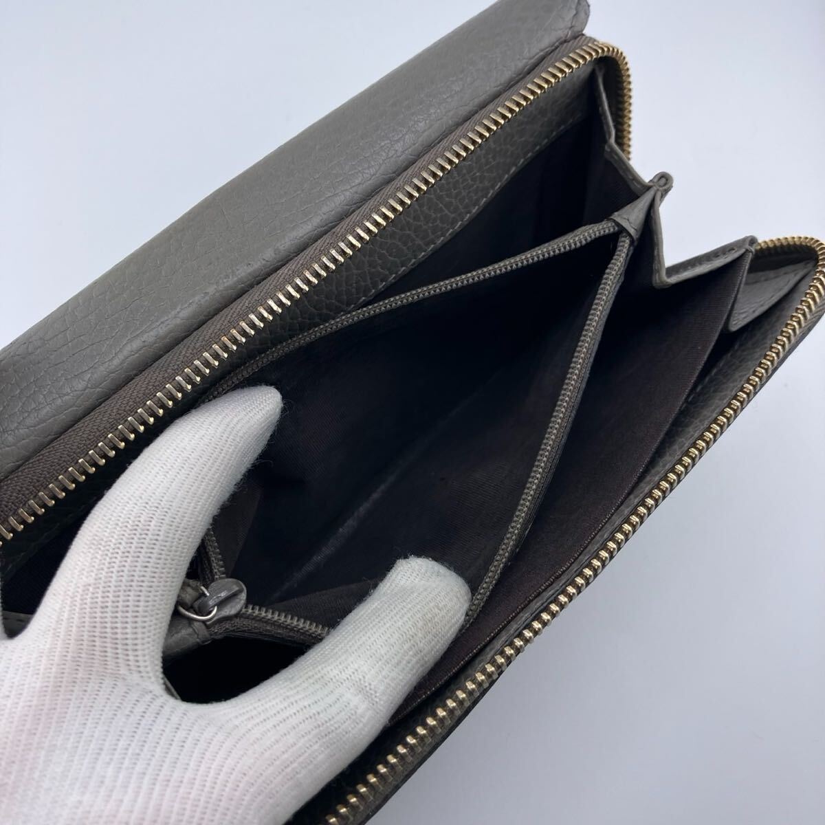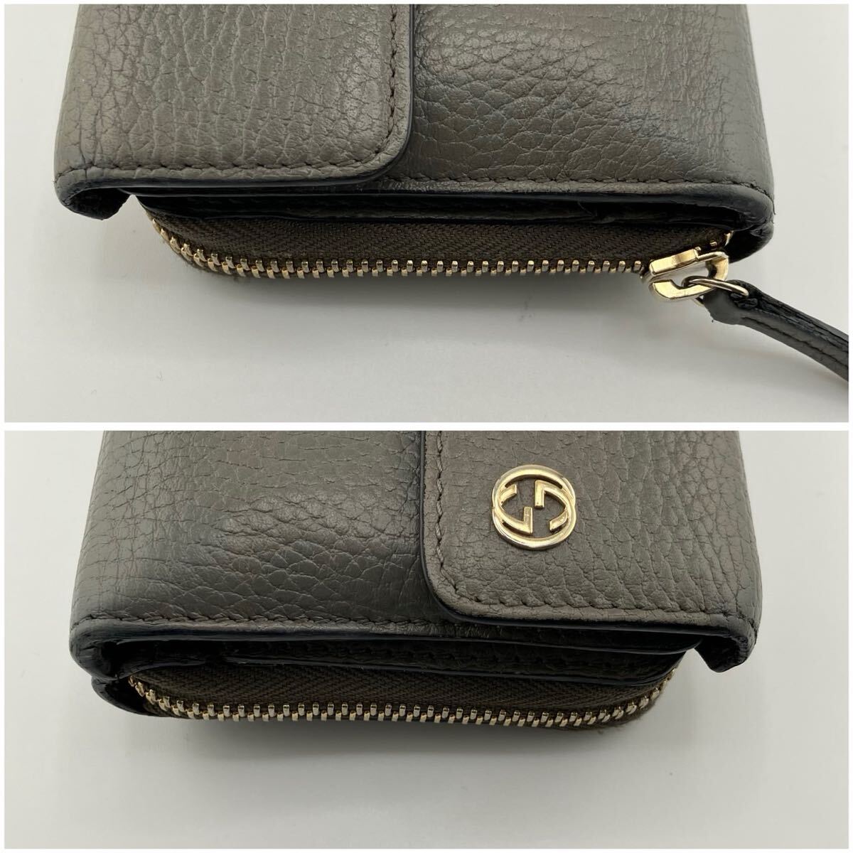 オーガナイザー インターロッキング レザー 本革 シボ革 グルー 灰色レディース メンズ 男女兼用 ユニセックス