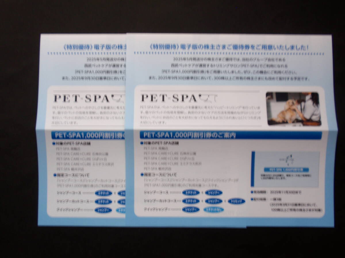 ◎この株主優待は、西武ホールディングスより届きました、最新の株主さまご優待冊子2冊と、電子版PET-SPA割引券2枚です。