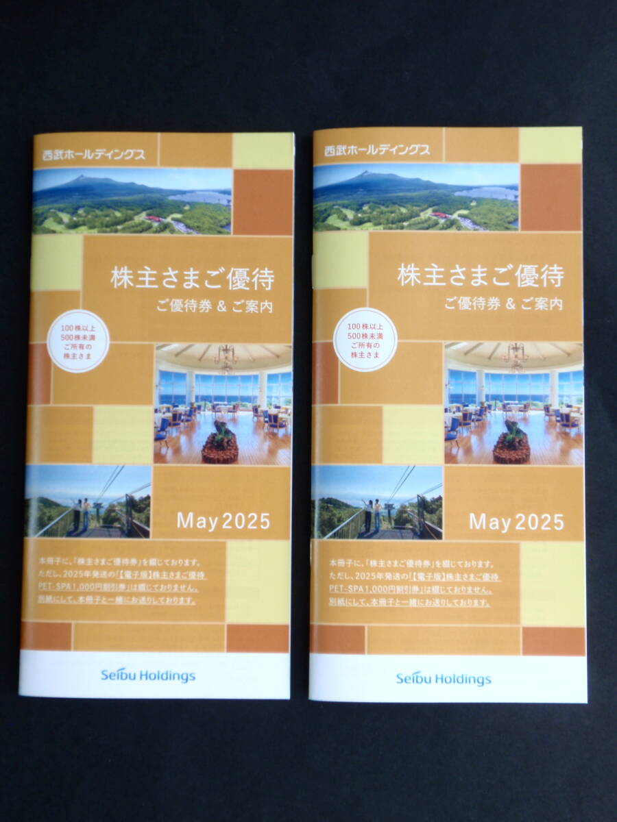 西武ホールディングス 株主優待 全券未使用冊子 2冊セット(共通割引券1000円6枚、レストラン割引券20枚、ゴルフ割引券4枚、ウェディング割引券2枚)と、PET-SPAでご利用頂ける電子版1000割引券3枚×2枚での出品です。