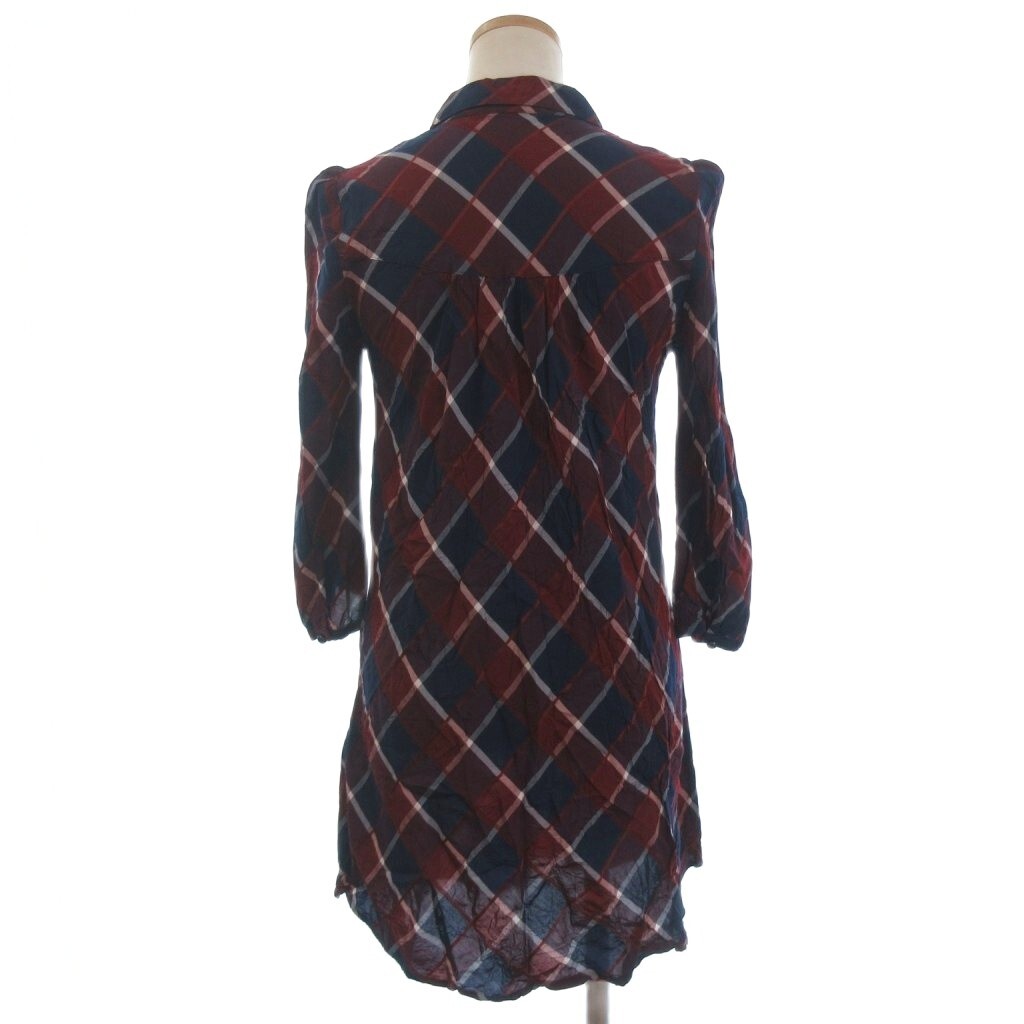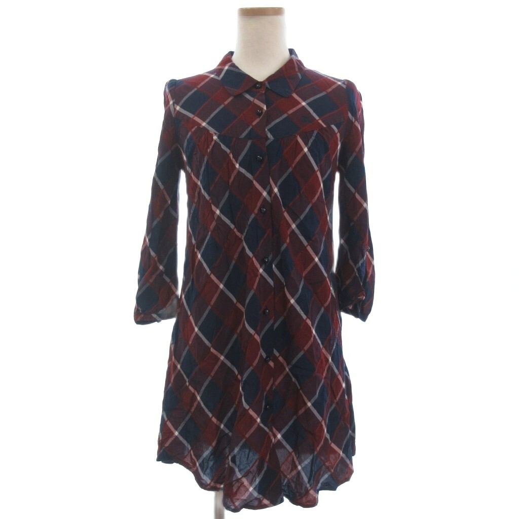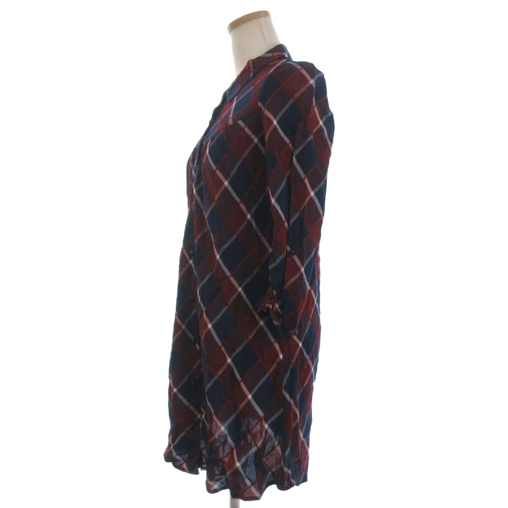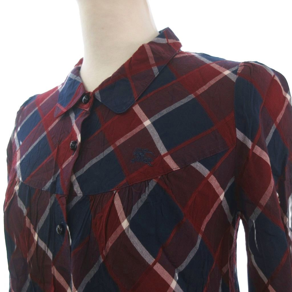 バーバリーブルーレーベル BURBERRY BLUE LABEL ワッシャー加工 ロング シャツ チェック 七分袖 レッド ネイビー 38 M位 レディース