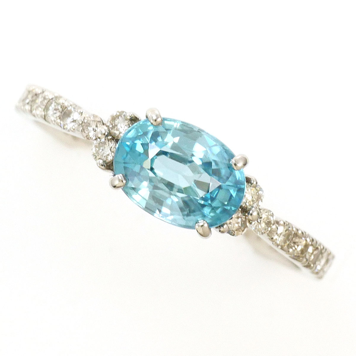 PT950 プラチナ リング・指輪 13号 ブルージルコン 1.55ct ダイヤモンド 0.21ct 総重量2.1g 中古 美品 送料無料 | |