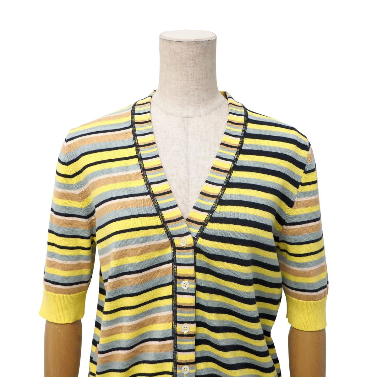 GS3564≫Paul Smith ポールスミス ニット 半袖 カーディガン マルチボーダー コットン サイズM マルチカラー系 | |||