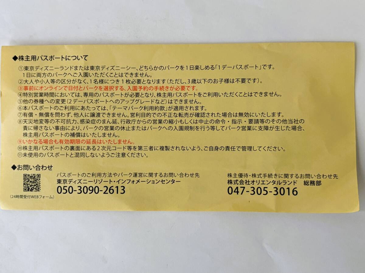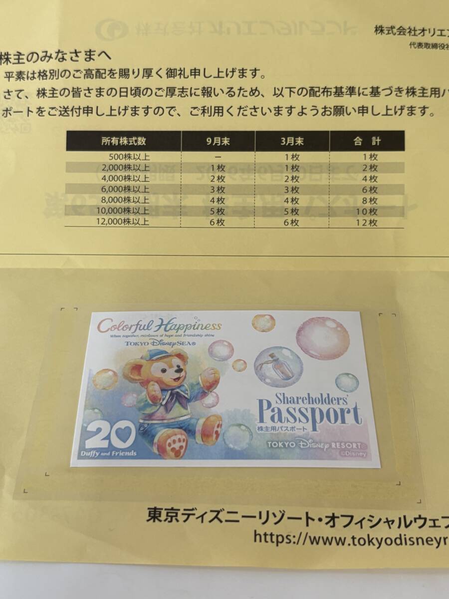 東京ディズニーリゾート 株主優待 オリエンタルランド 株主用パスポート