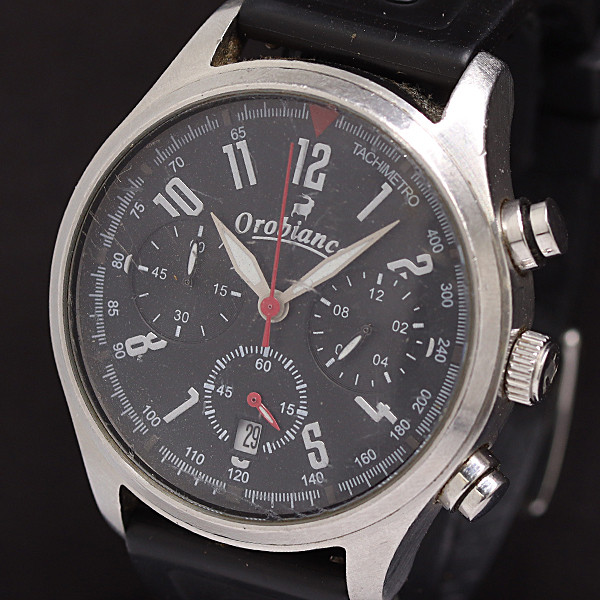 1円 箱付 稼働 オロビアンコ OR-0021 QZ ブラック文字盤 メンズ腕時計 0594000 9ERT MST