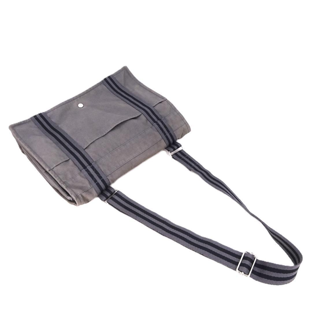 本物 良品■エルメス■バサス MM フールトゥ グレー ブラック キャンバス ショルダーバッグ 斜めがけショルダーバッグ