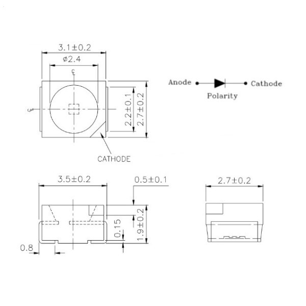 【匿名配送】 3528 SMD LED 白(ホワイト) 100個