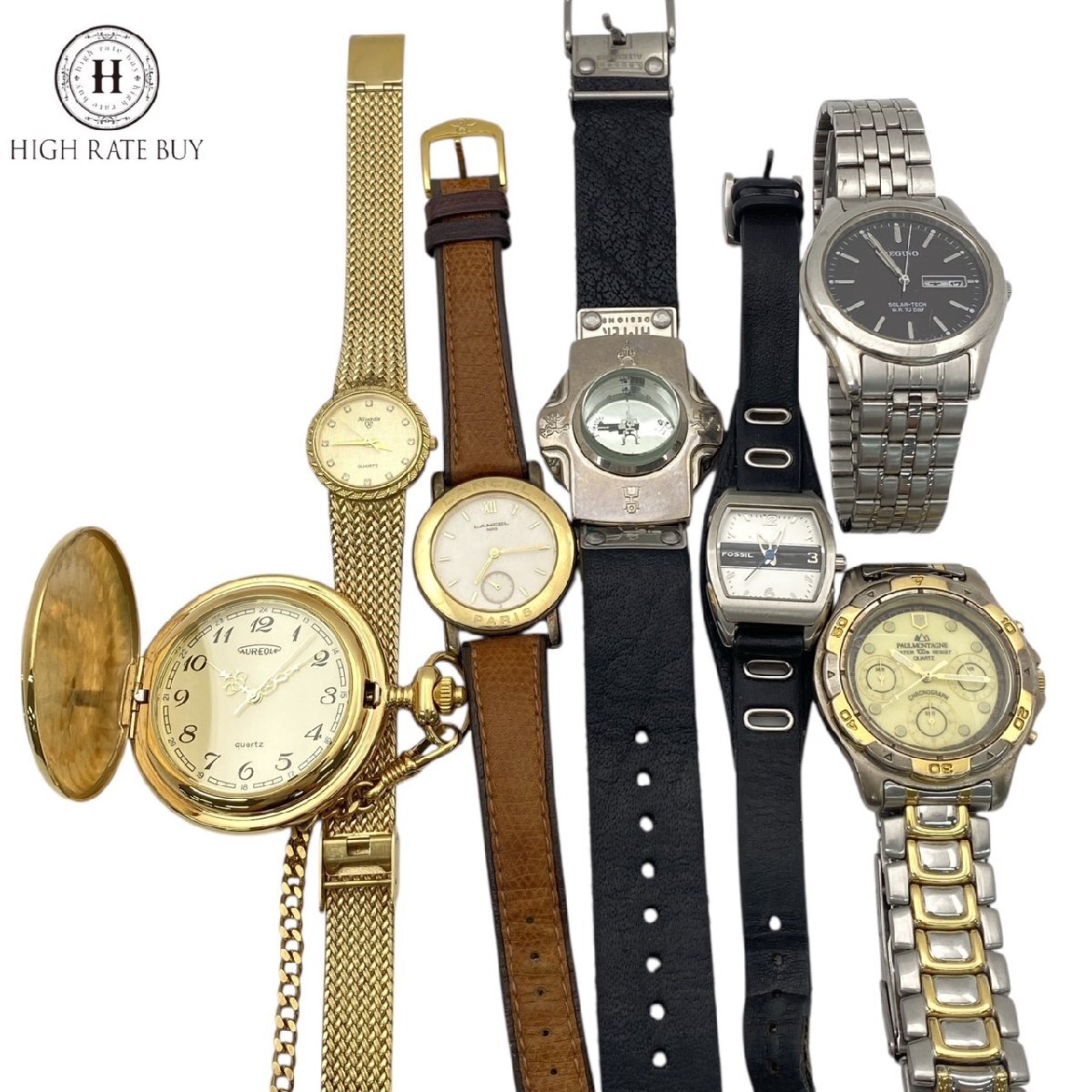 1円スタート 腕時計 懐中時計 7点セット CITIZEN REGUNO ランセル フォッシル 等 クロノグラフ QZ ソーラー メンズ レディース 稼働品 含