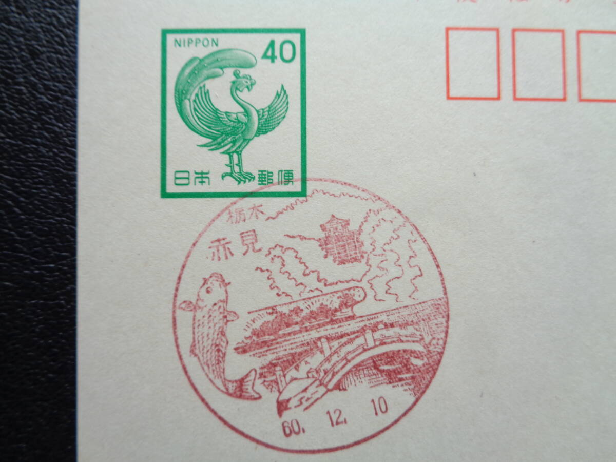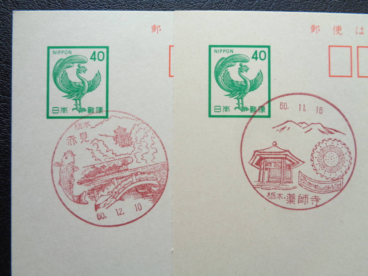 鳳凰はがき    初日印/風景印    栃木県2枚    薬師寺/S60.11.16   赤見/S60.12.10