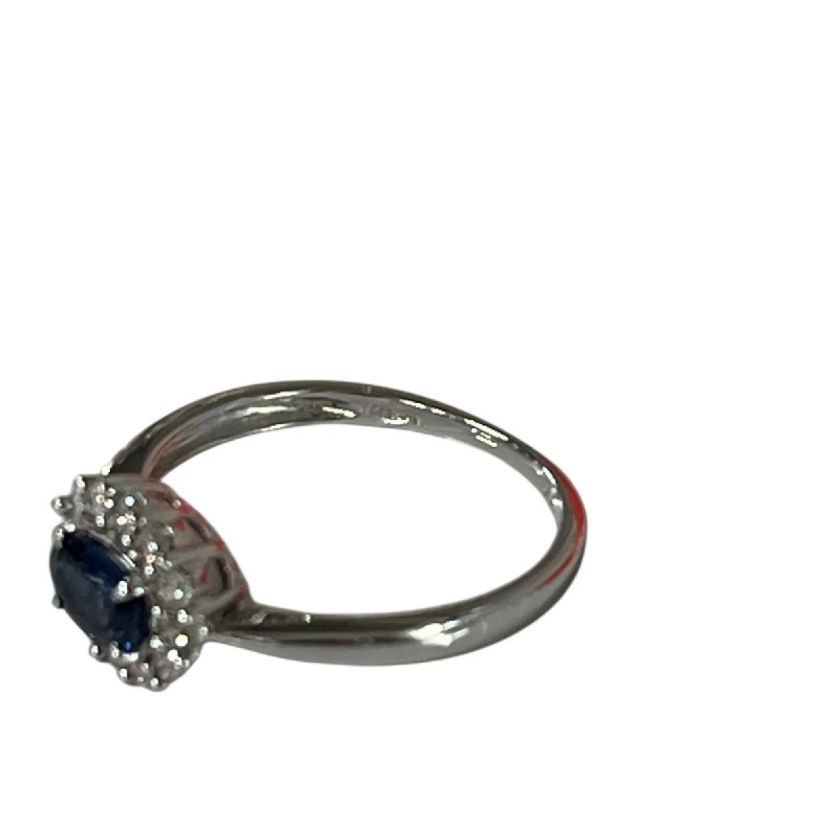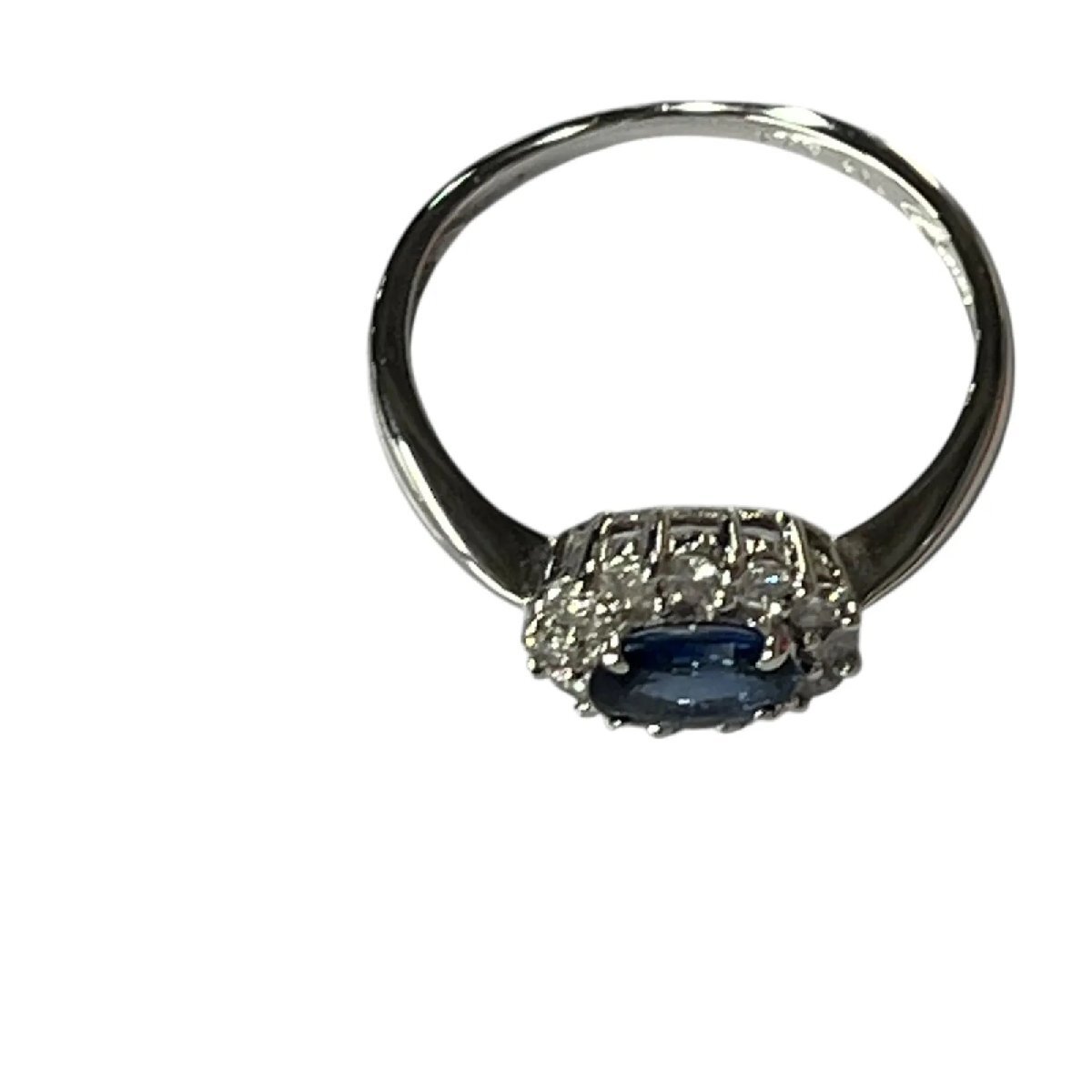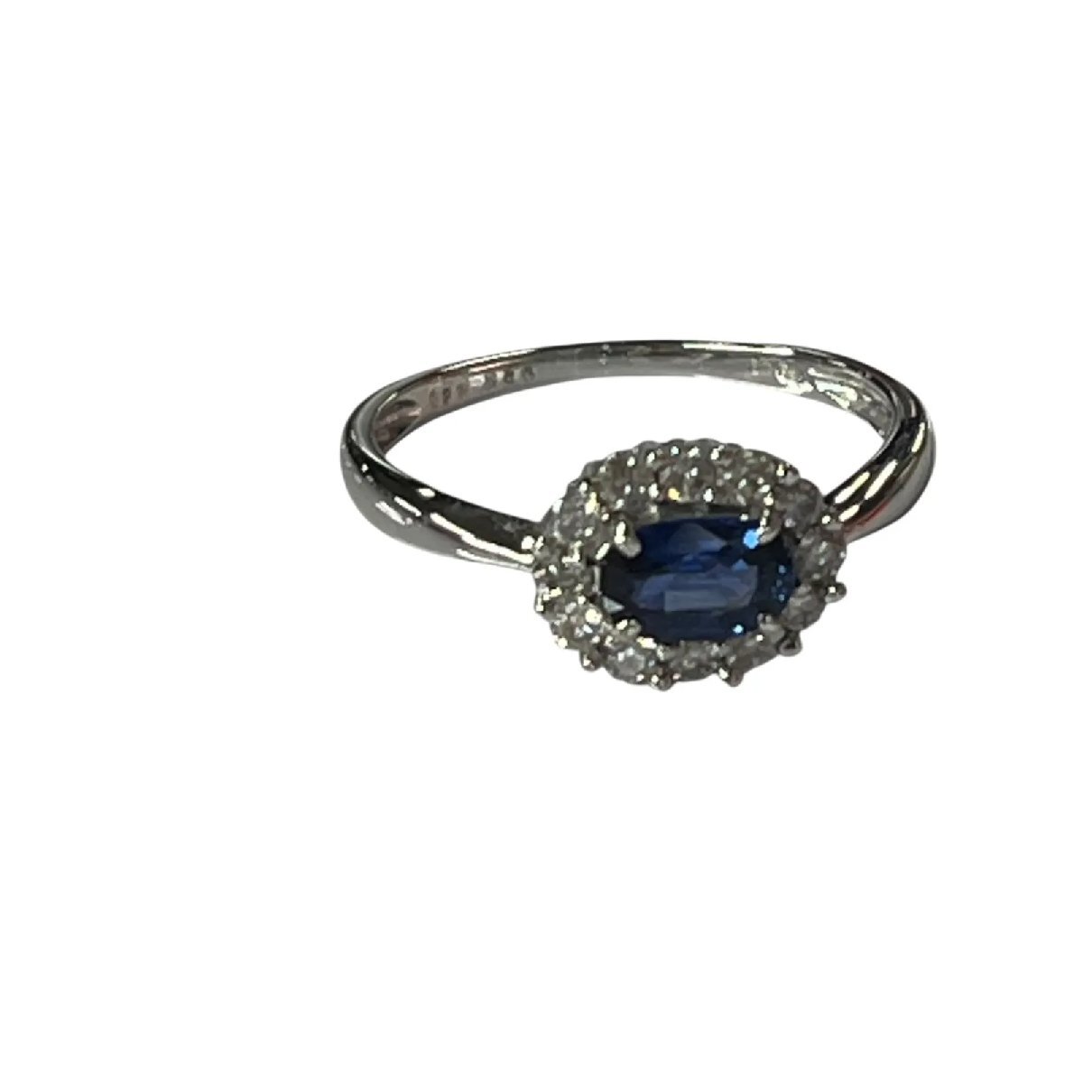 ●美品 ダイヤモンド サファイア 宝石 指輪 リング K18WG 18金 ホワイトゴールド 貴金属 9. 5号 レディース S5S667