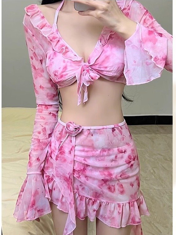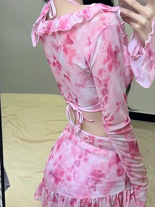 新感覚スクール水着 上下セット 洋服 旅行 大人 水着 フリル 20代 30代 40代 盛れるお洒落 海 コスプレ 温泉 プール ピンク M