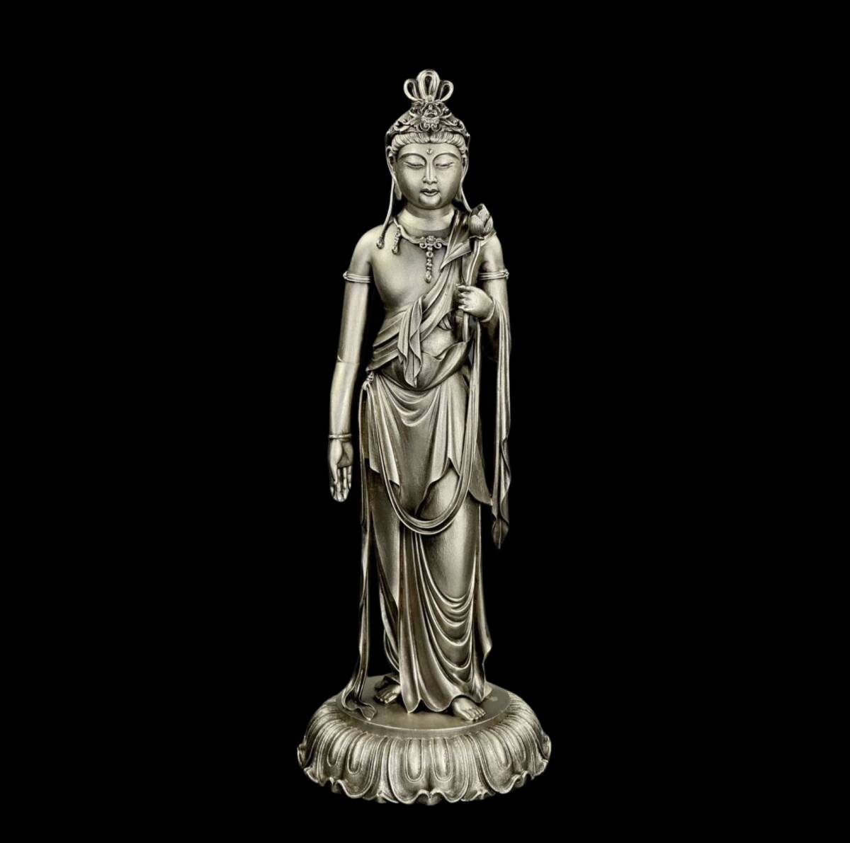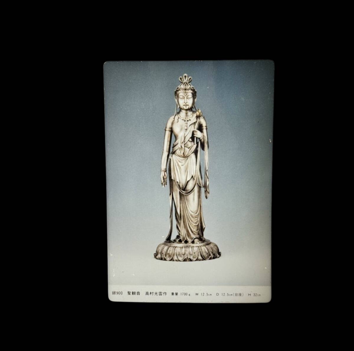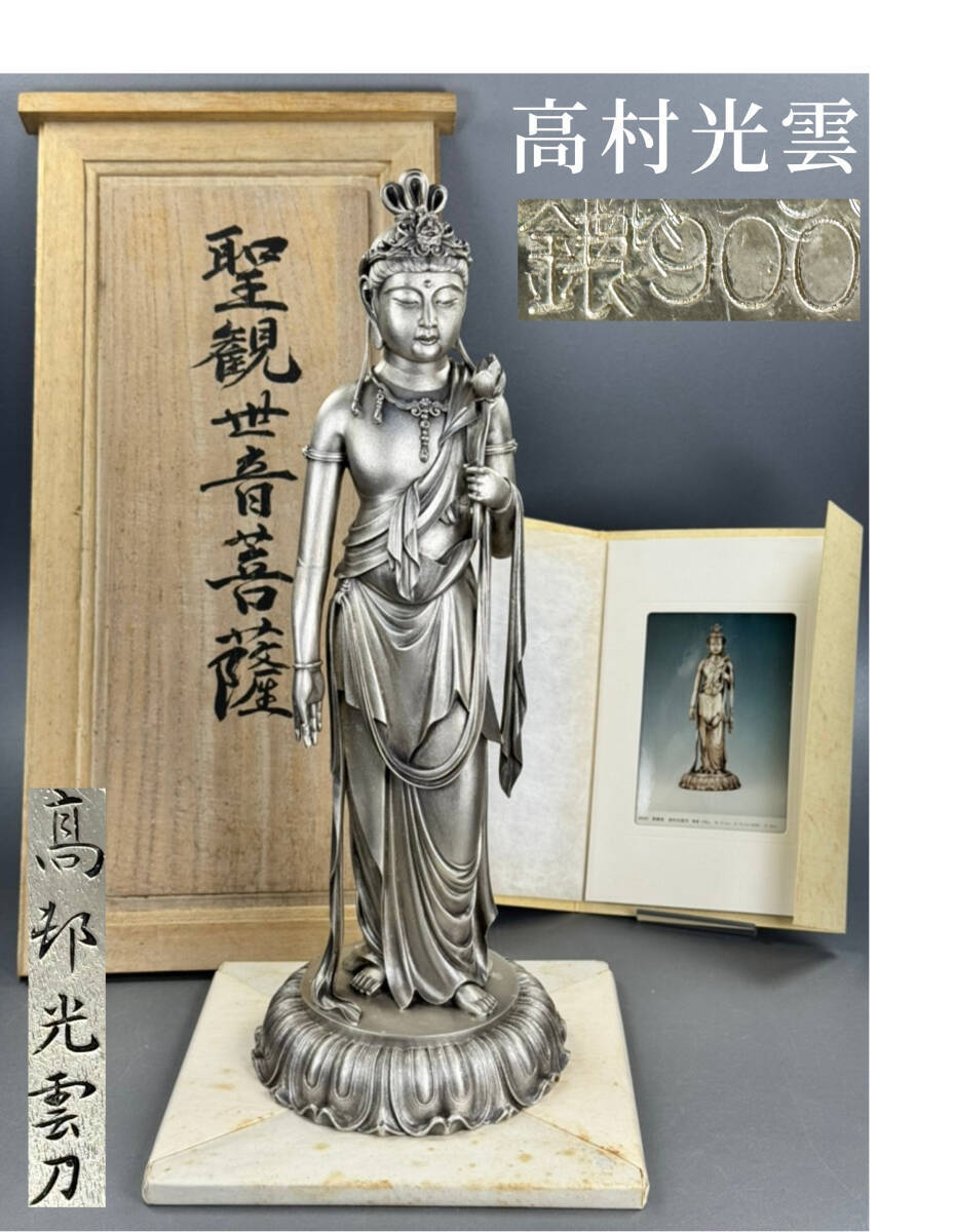 【偲】仏像 聖観世音菩薩 銀900 高村光雲仏像 古美術品 銀製置物 共箱 高さ約32㌢ 重約1700g 観音様の慈悲深い表情 r-145