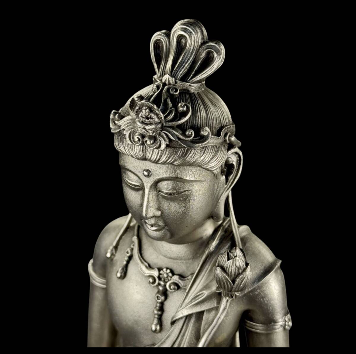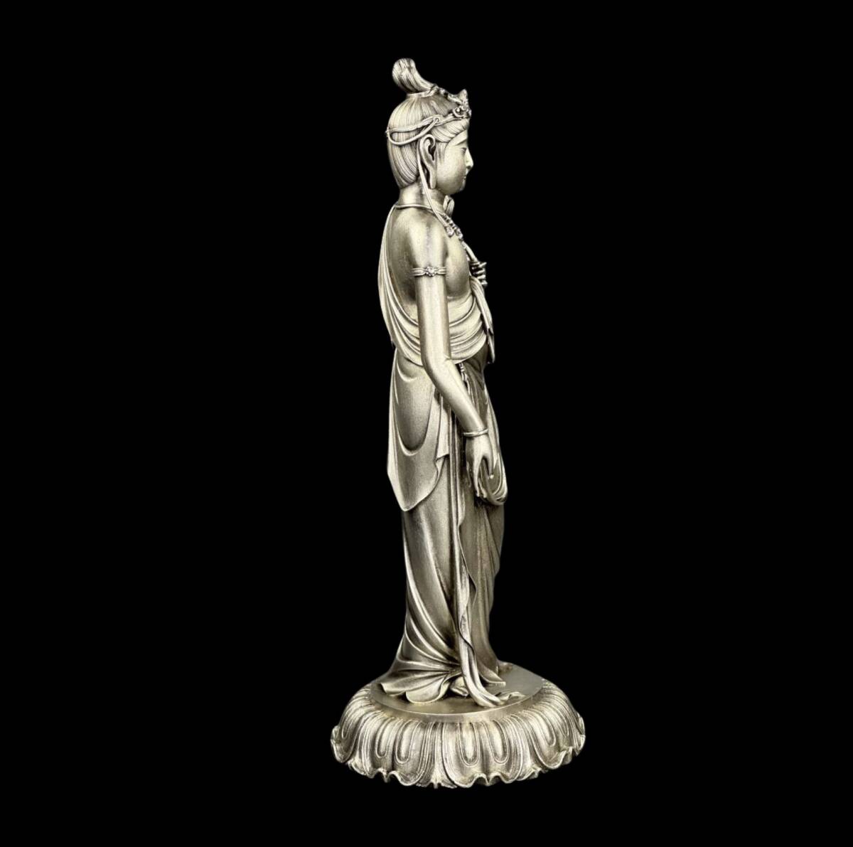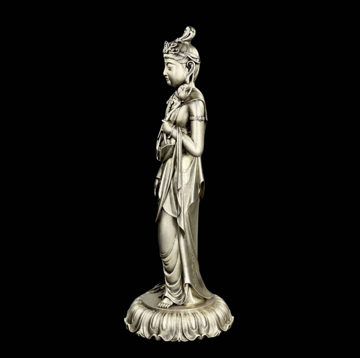 【偲】仏像 聖観世音菩薩 銀900 高村光雲仏像 古美術品 銀製置物 共箱 高さ約32㌢ 重約1700g 観音様の慈悲深い表情 r-145