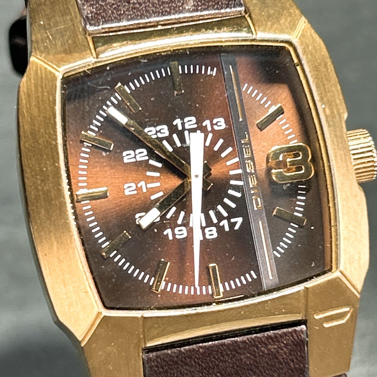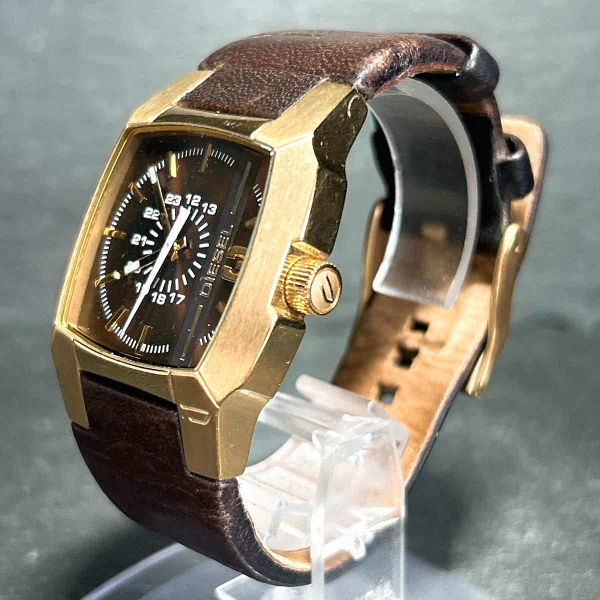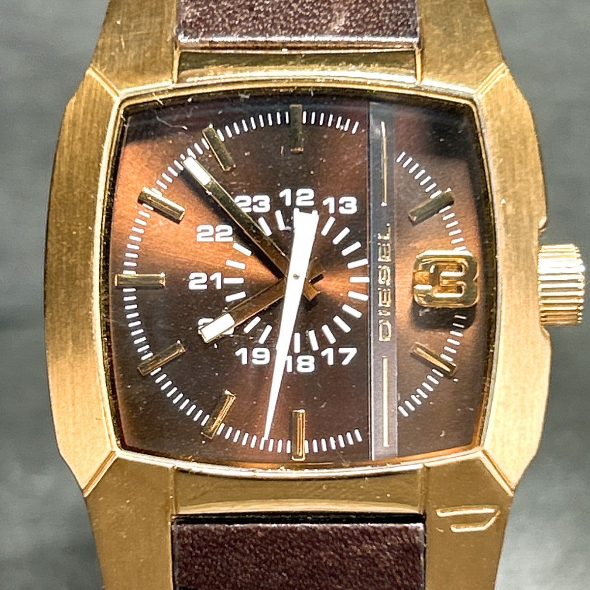 美品 DIESEL ディーゼル DZ-1297 腕時計 クオーツ アナログ ゴールド ブラウン文字盤 ステンレススチール スクエア メンズ レザーベルト