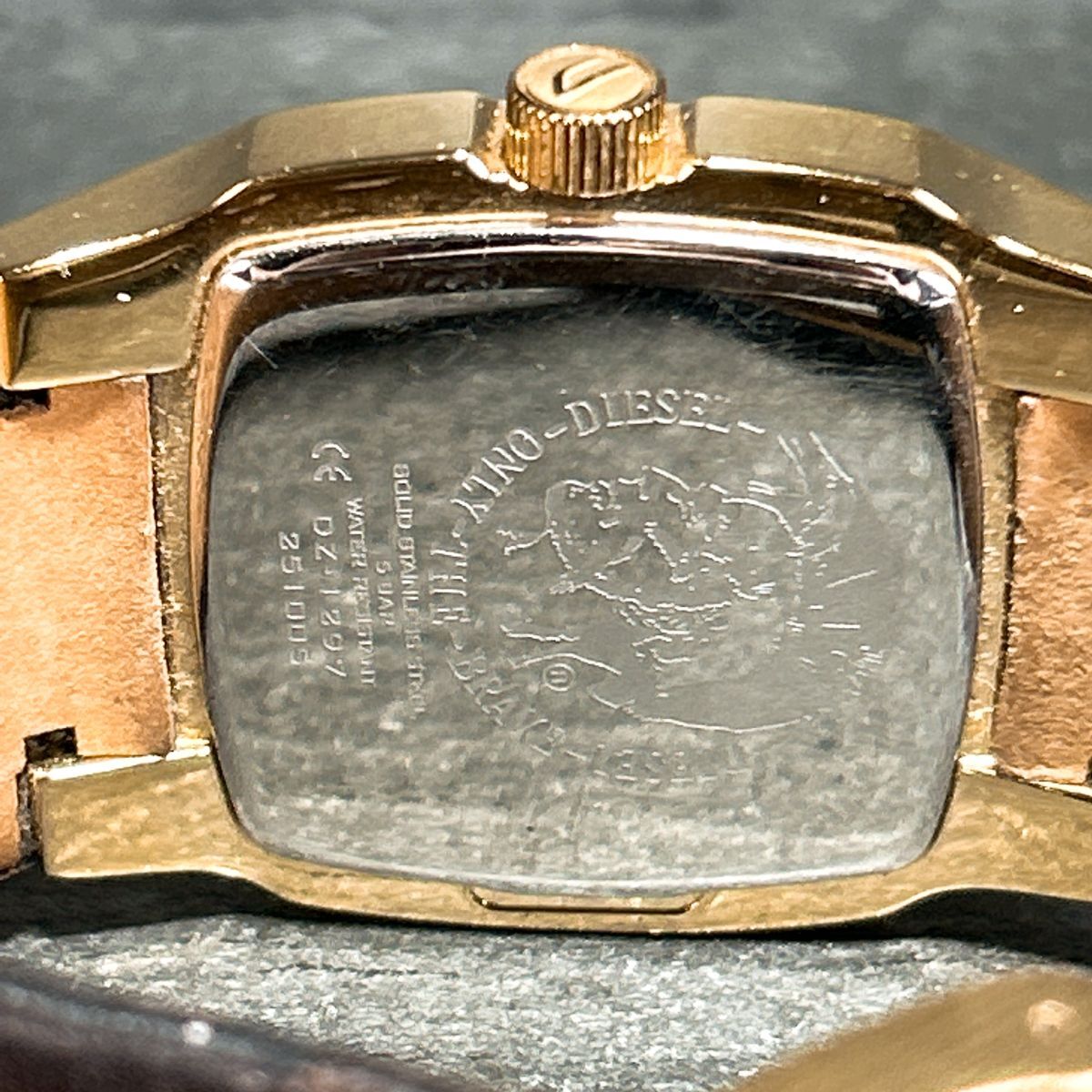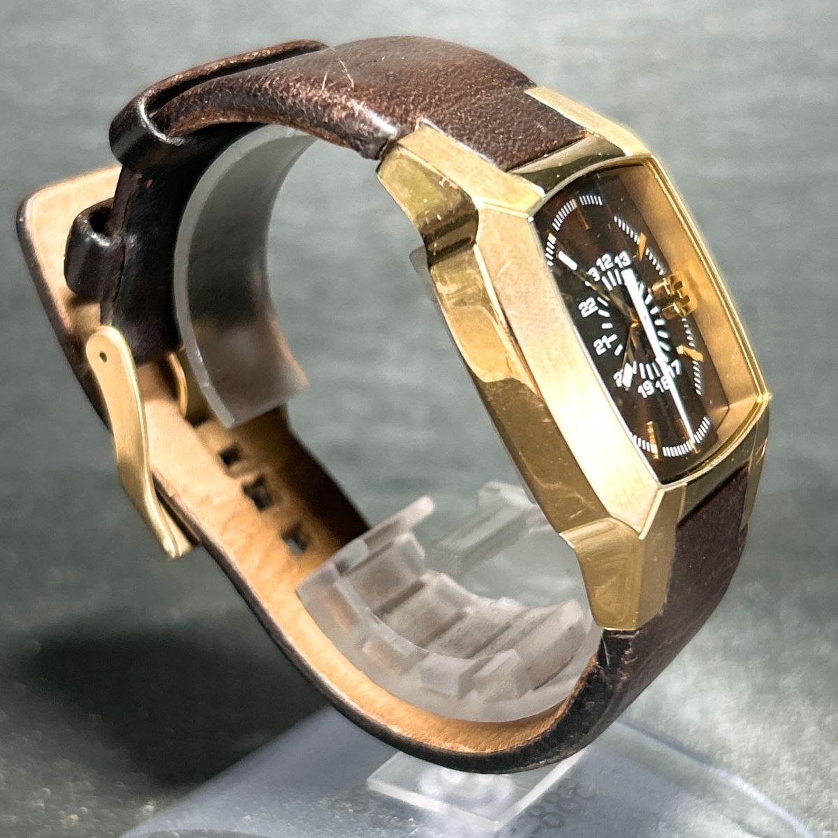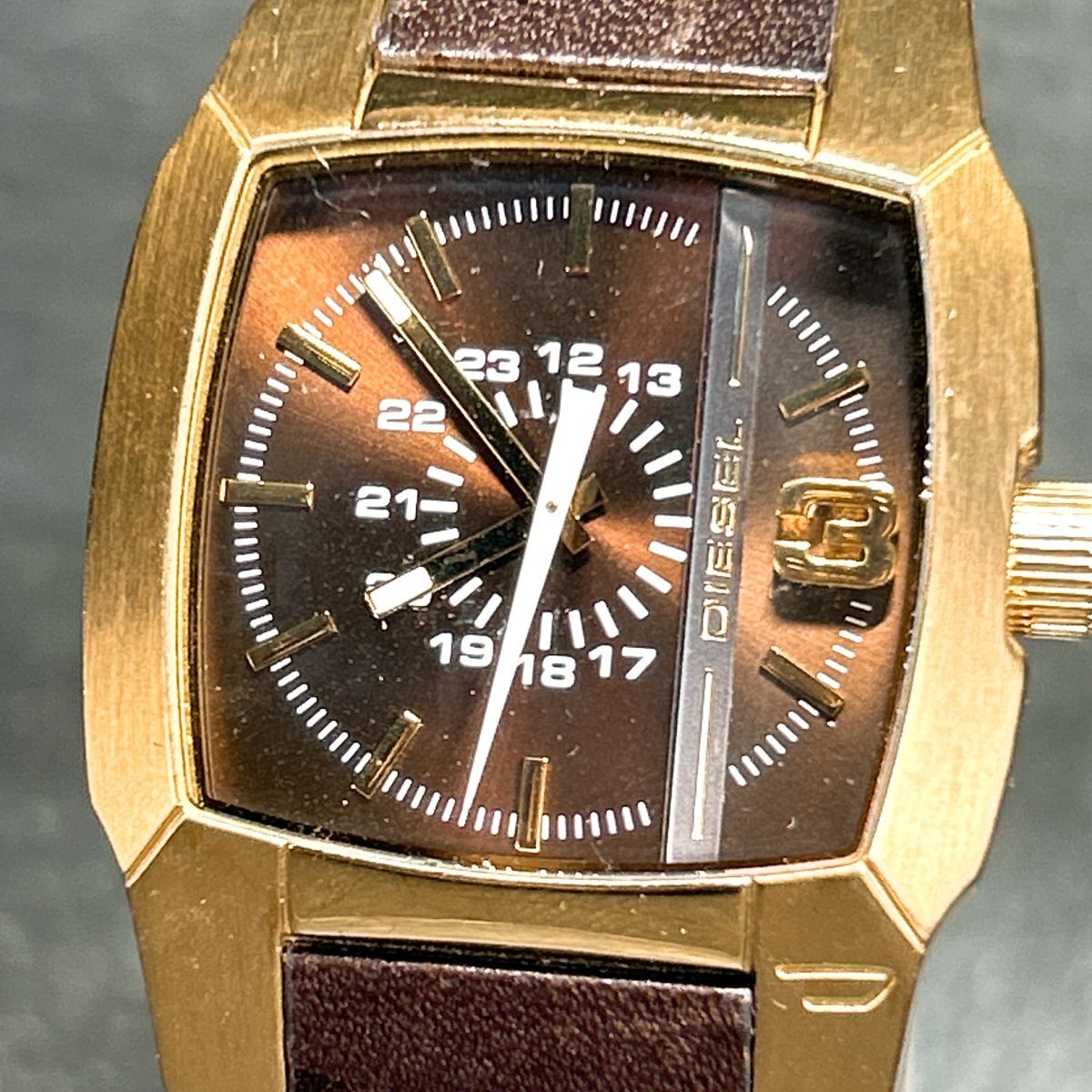 美品 DIESEL ディーゼル DZ-1297 腕時計 クオーツ アナログ ゴールド ブラウン文字盤 ステンレススチール スクエア メンズ レザーベルト