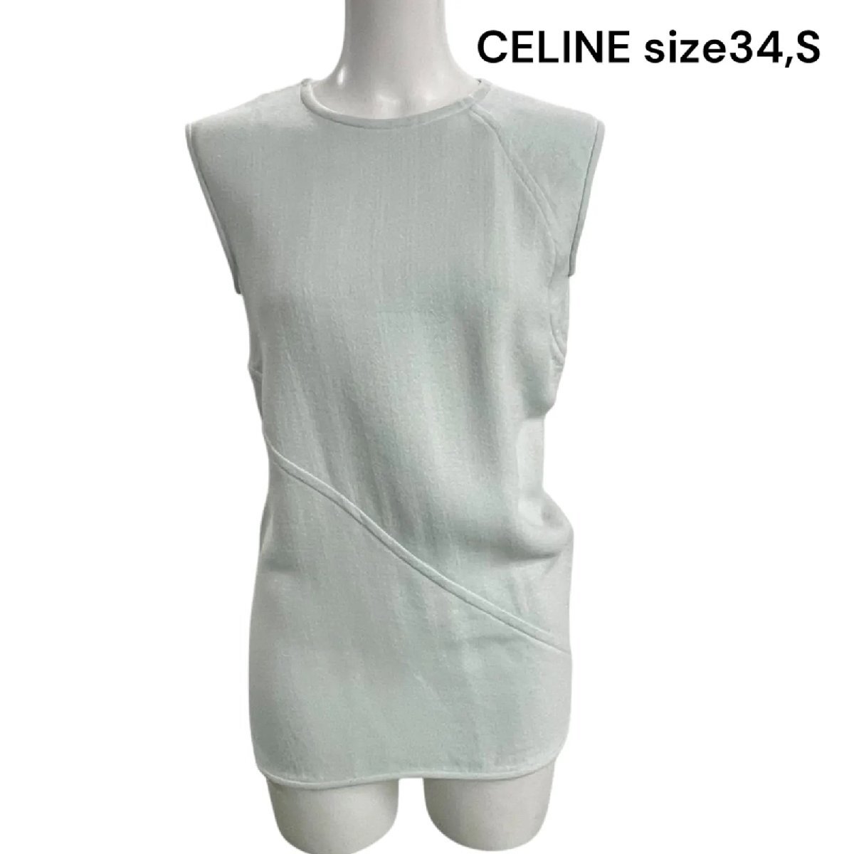 美品 セリーヌ CELINE 綿、麻 ノースリーブ カットソー ブラウス トップス 34、 S、7号 レディース S5P536