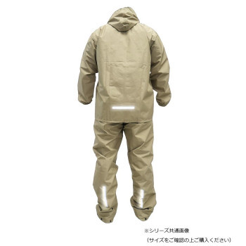 | 仕様 | 適応胴囲:67~77cm 適応胸囲:85~91cm 適応身長:155~165cm 耐水圧(初期値):10000mmH2O パーカーフード付き 内比翼 防水加工 撥水加工 反射付き 裾調節(パンツ裾はボタン調節式) |