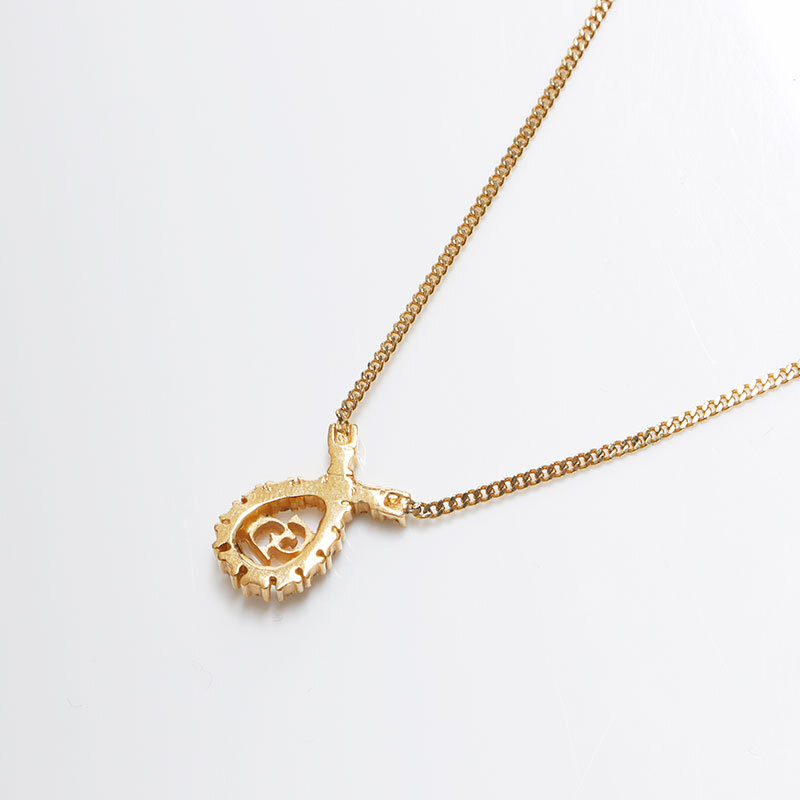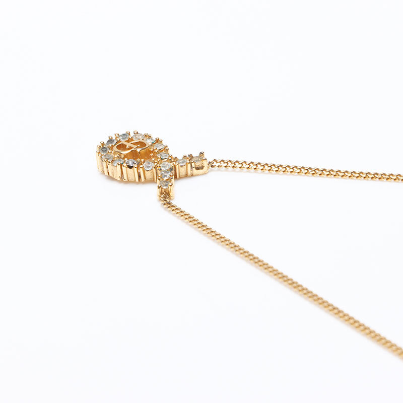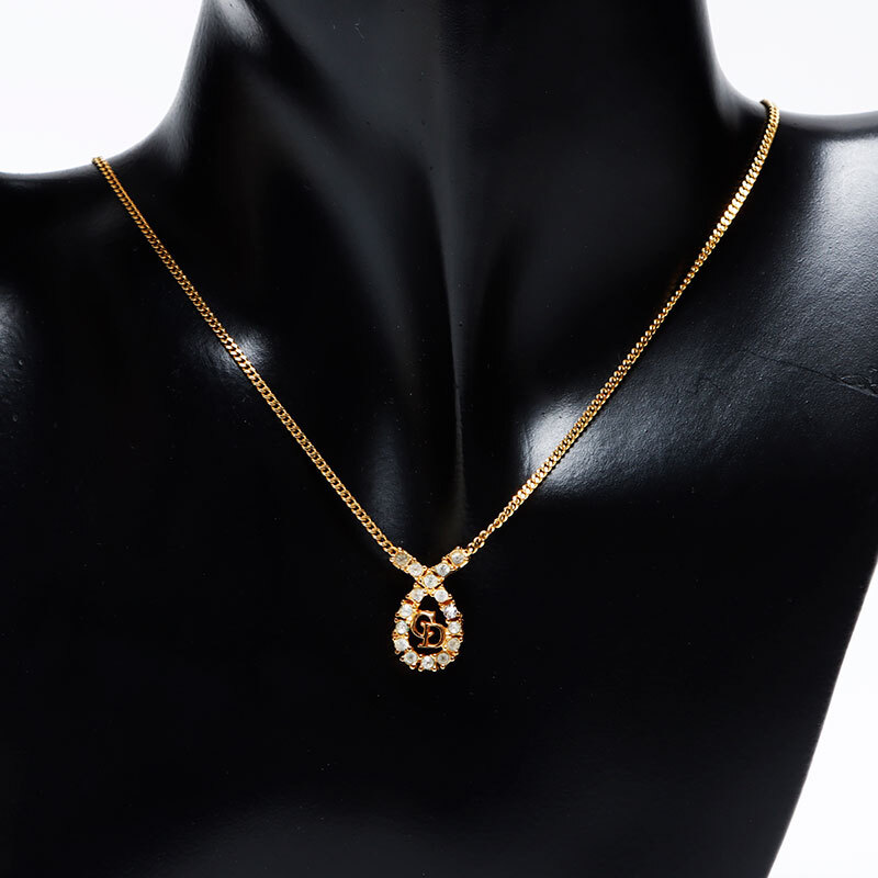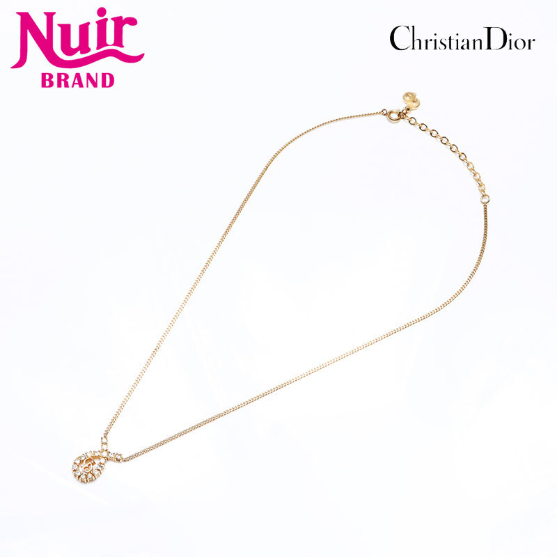 極美品 クリスチャンディオール Christian Dior CDロゴ ラインストーン ネックレス ゴールド WS11054