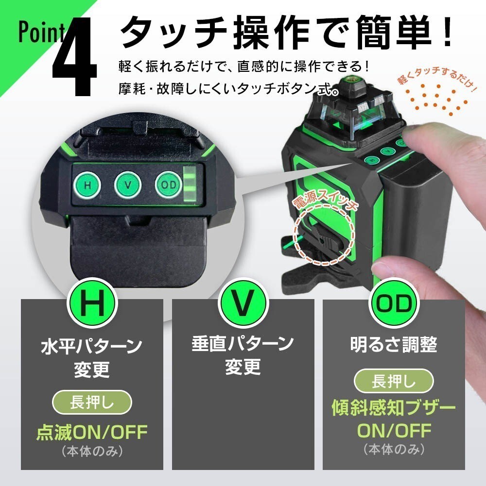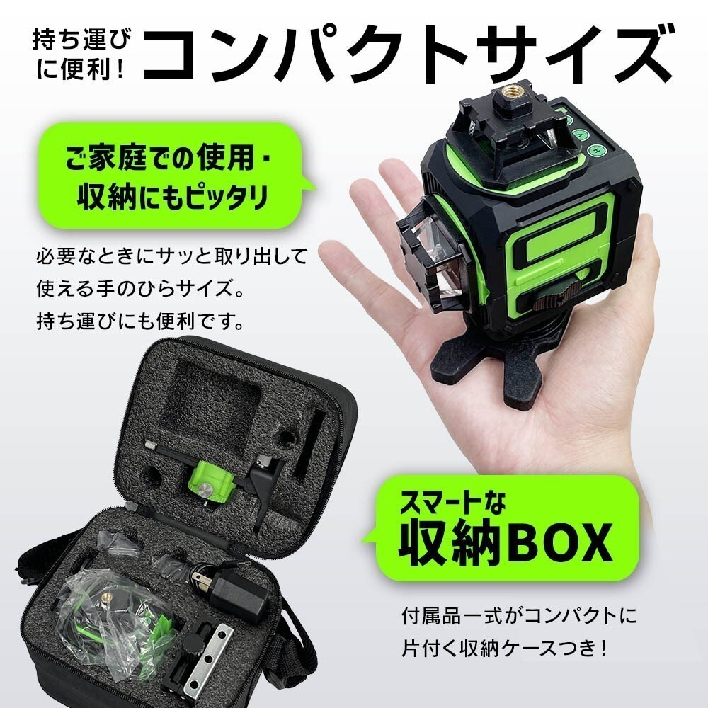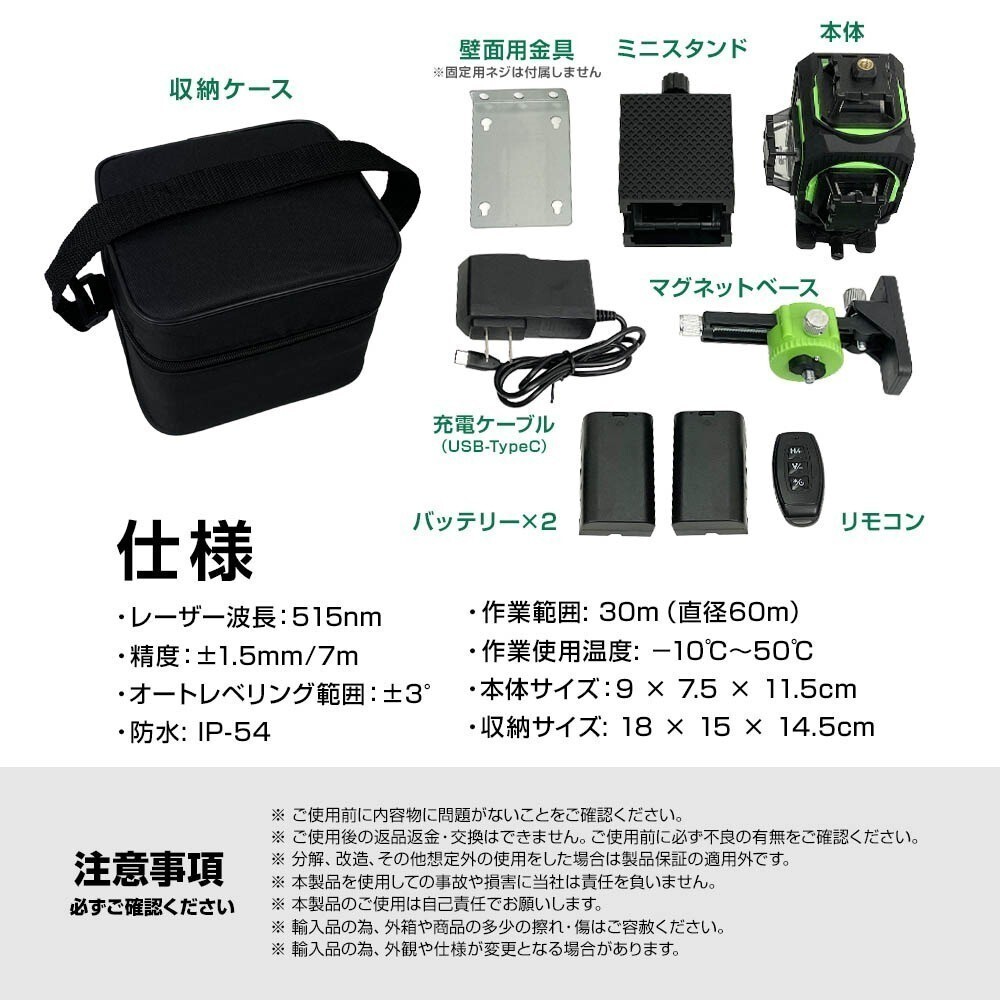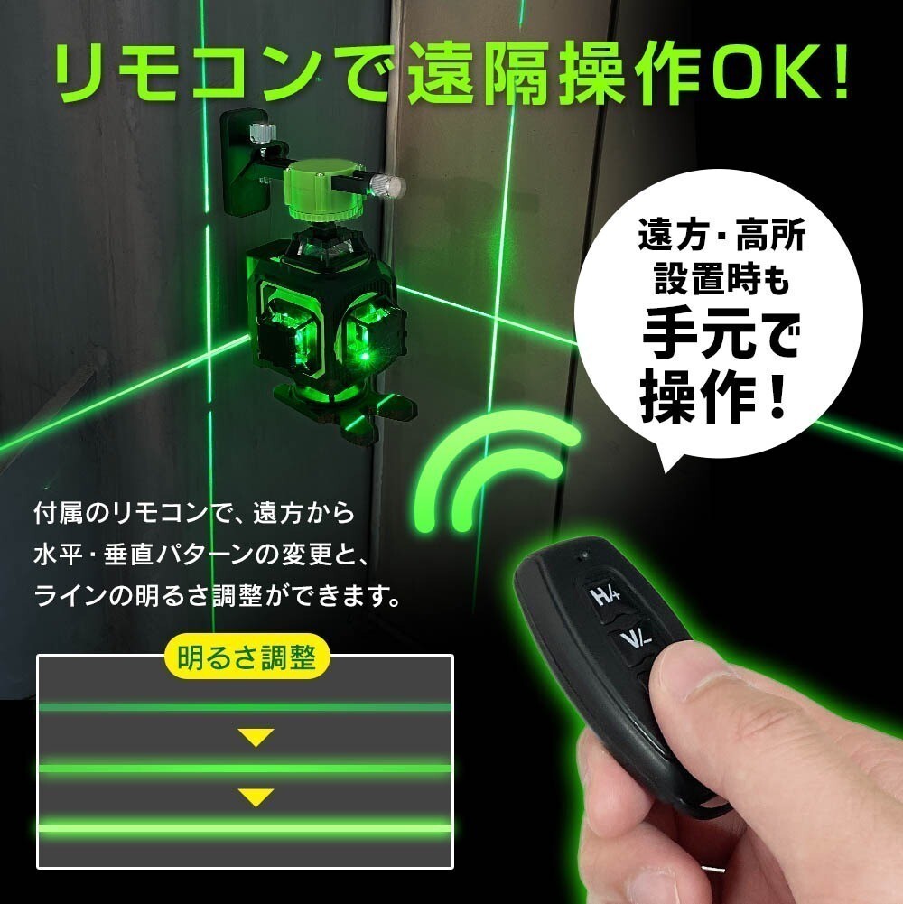 レーザー墨出し器 360°フルライン対応 リモコン操作 自動補正 傾斜警告機能 室内外兼用 大容量バッテリー 2個付 測量 建築 DIY 1年保証