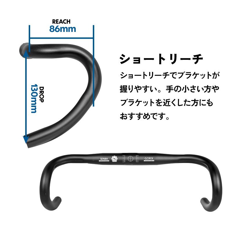 下ハンドルが広がっているのが特徴のフレアハンドル。 ショートリーチでブラケットが握りやすいタイプ。 エンド部分に向けて末広がり。 ロードバイクの他にもオフロード走行を目的としたシクロクロスやグラベルロード、ツーリング車等におすすめ。 [フレア形状] 下ハンドルが広がっているのが特徴のフレアバー。 (エンド部分に向けて末広がり) 上ハンドルを狭く、下ハンドルを広くする事でポジションを柔軟に変更できます。 [ショートリーチ] ショートリーチでブラケットが握りやすい。 手の小さい方やブラケットを近くした方にもおすすめです。 [耐久性] 軽量で丈夫なアルミ材質 [センターライン] ハンドル交換の際に調整しやすいセンターラインとメモリ 商品内容ドロップハンドル 幅380mm クランプ径31.8mm 重量294g ※400mm ドロップ130mm リーチ86mm 材質アルミ タイプ末広がり(フレアタイプ) |