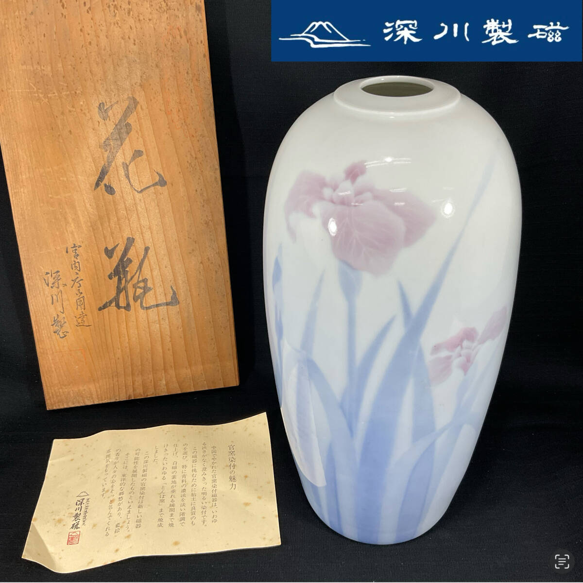 深川製 花瓶です。宮内庁御用達の伝統ある有田焼の窯元です。あやめ柄が美しい花瓶です。是非御検討下さい。