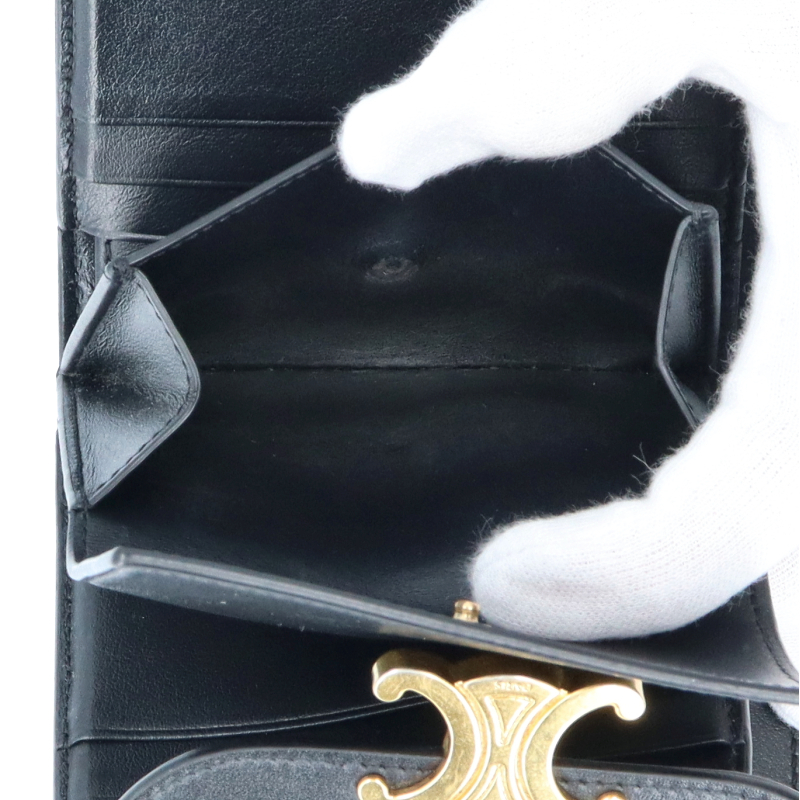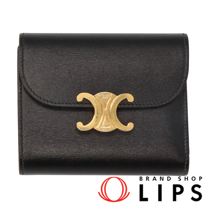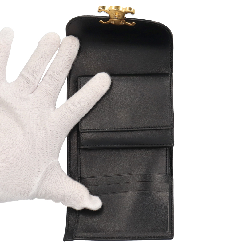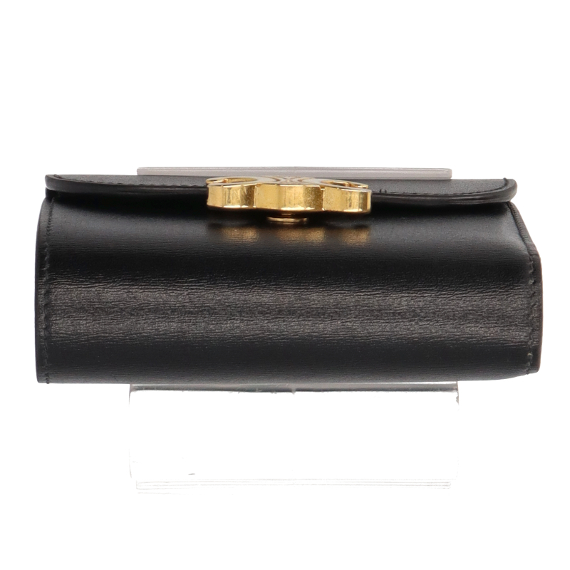 セリーヌ スモール フラップウォレット トリオンフ 10D783DPV.38NO カーフスキン レディース ブラック 中古
