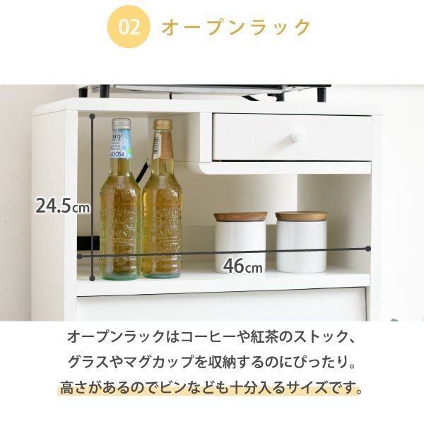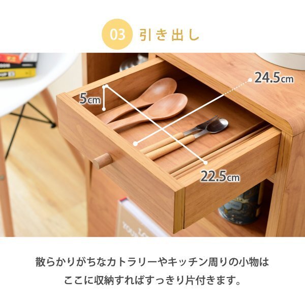 【カラー】 ブラウン、ナチュラル、ホワイト 【サイズ】 <外寸> 幅50×奥35.5×高さ73cm <内寸> オープン部:幅18/46×奥行27×高さ24.5/15.5cm 引き出し:幅22.5×奥行24.5×高さ5cm フラップ扉部:幅44.5×奥行2×高さ29.5cm フラップ扉内:幅44(最大46)×奥行26×高さ26(最大27.5)cm 可動棚:幅46×奥行25.5×厚み1.5cm(3.2cmピッチ5穴) 脚元空間:高さ11cm 【材質】 本体:プリント紙化粧繊維板 脚:天然木 【耐荷重】 天板:(約)20kg以下 オープン部:(約)5kg以下 引き出し:(約)3kg以下 フラップ部:(約)2.5kg以下 可動棚:(約)5kg以下 【生産国】 マレーシア 【梱包】 サイズ:66×37.5×18cm、重量:18.2kg 【その他】 ・六角レンチ同梱 ・背面化粧有り ・合計1500Wの2口コンセント付き(コード長さ2m) ・脚は天然木を使用しているため、商品によって色味や木目などの風合いが異なります。 ・脚裏フェルト付き 【組み立て品】 お客様による組み立てが必要です。 【ご注意】 ・サイズ、重量は概算です。 ・商品カラーはご使用のモニターによって実際の明るさや色と異なって見える場合がございます。 |