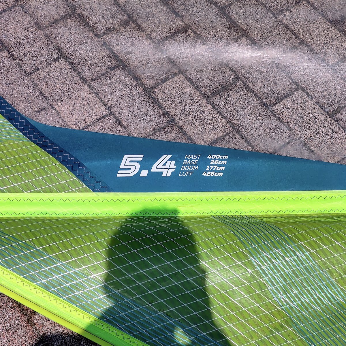 サイズは 5.4(ラフ長426cm、ブーム長177cm)ジャンルはオンショア・ウェーブ・セイル になります。