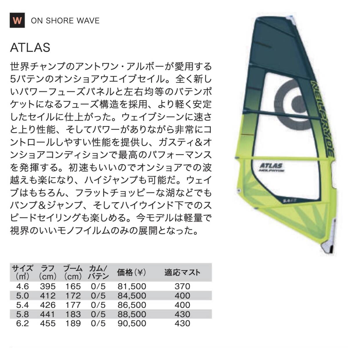 2018 NEILPRYDE ATLAS 5.4 パワフル・5本バテン・ウェーブセイル!強風平水面でのフリーライドでも活躍!
