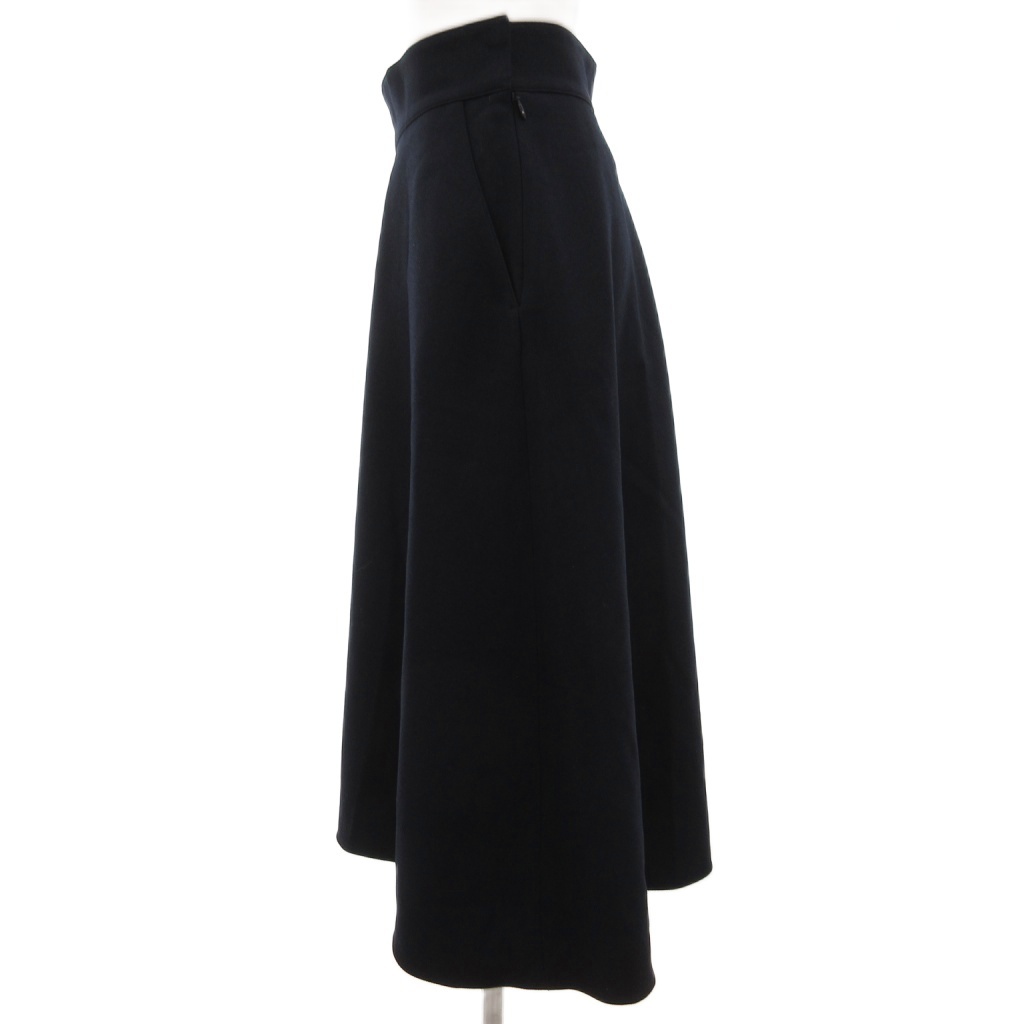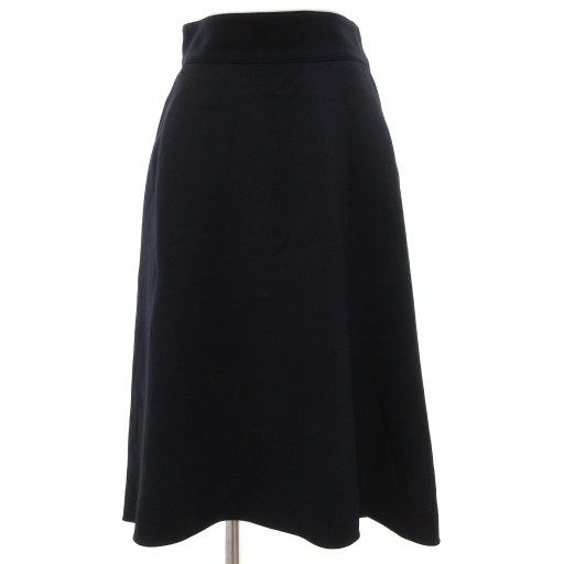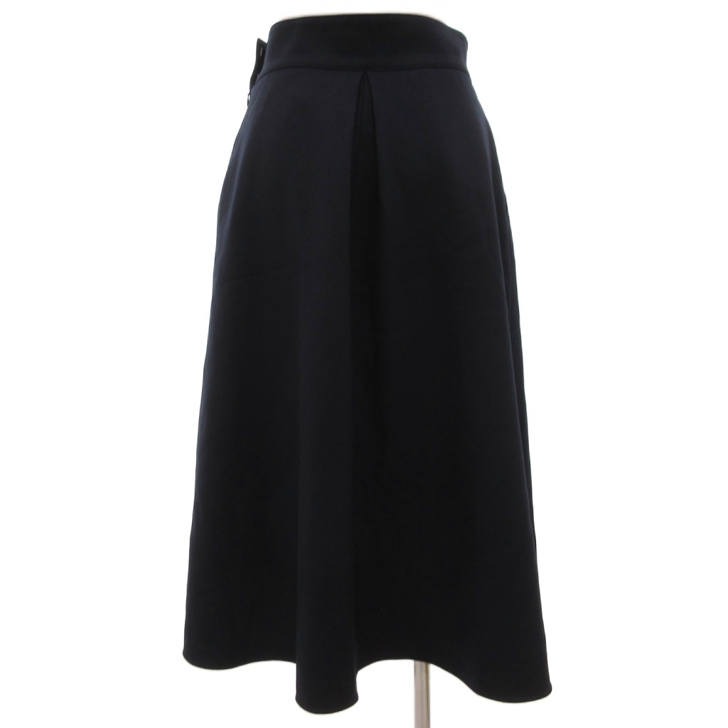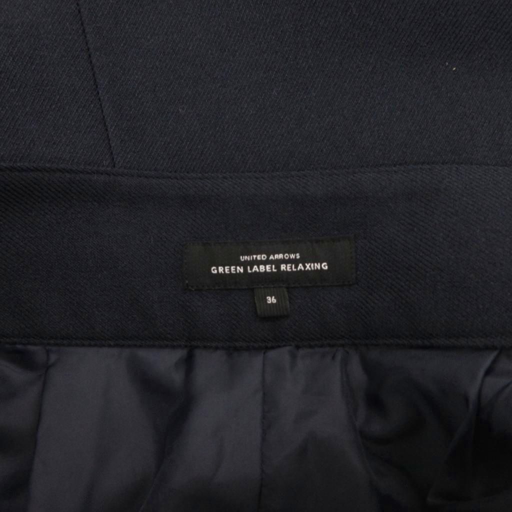 グリーンレーベルリラクシング ユナイテッドアローズ 美品 バックタックフレア スカート ひざ丈 36 紺 ネイビー ツイル /FF