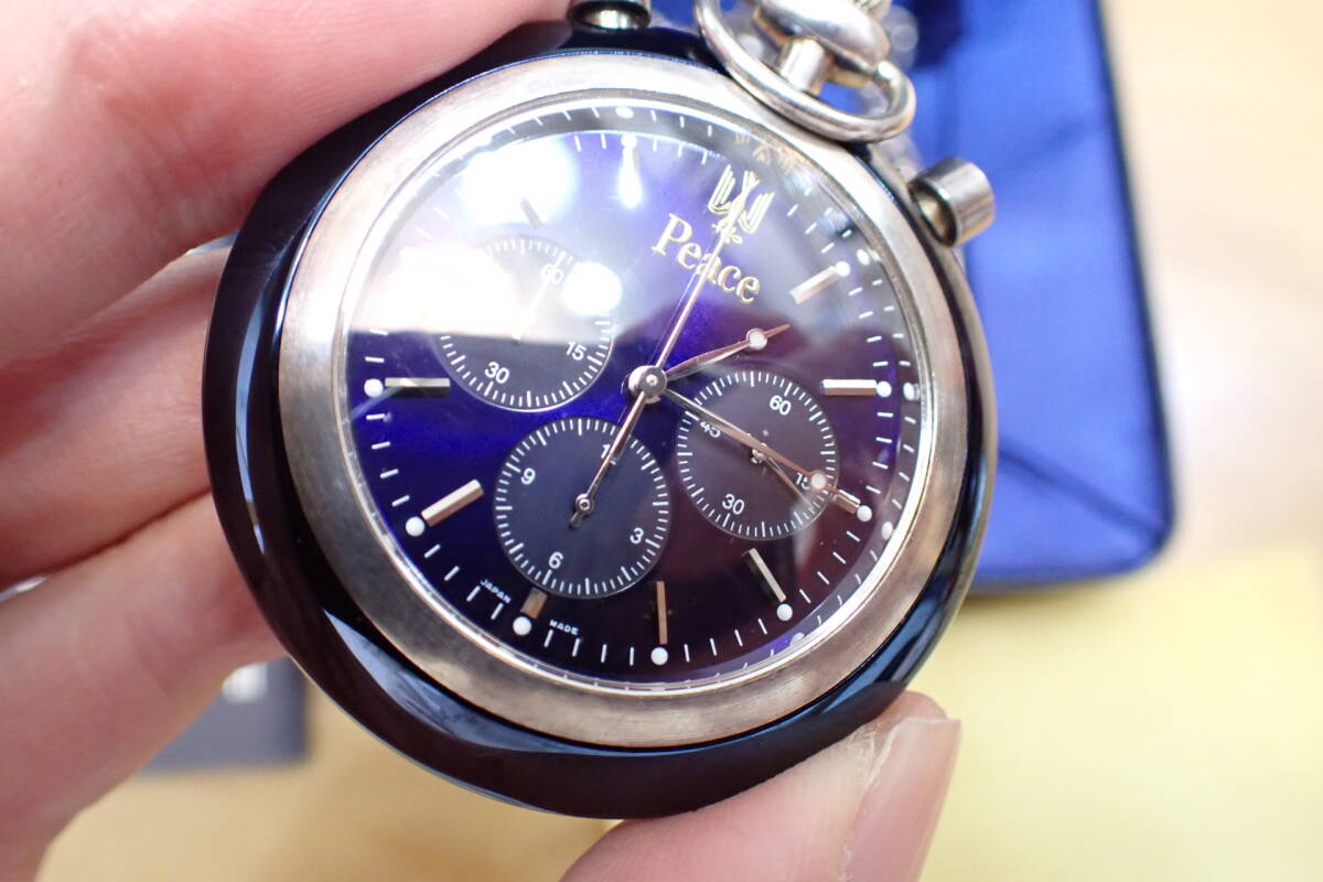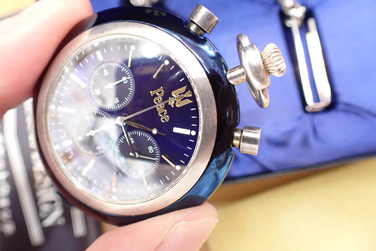 Peace/ピース 90年代 ブルーチタン クロノグラフ 懐中時計です。 当時物で珍しいです。 ケース入りの説明書付きで未使用、長期保管品です。 経年による多少のクスミ、小傷程度で保護シールも付いており綺麗です。 他写真でご確認ください。 電池は入っており、稼働しています。 電池の持ちは不明です。 ケース径:約42mm !オークション終了後、24時間以内に「お取引を始める」ボタンをクリックして、必ず取引をスタートして下さい。 取引のスタートが無ければ、削除させていただきます。 必ず厳守してください! 「新規ID」「直近で悪い評価が多い方」のトラブル(イタズラなど)が非常に多いです。 当方が、お取引に支障があると判断したID(特に新規ID)は削除します。 ●ジャンク品と記載の物の商品到着時の動作保証はありません。 ●付属品等は、写真に写っているものですべてです。 |