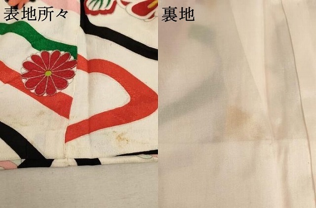 着物【正絹】の状態は接写画像のように表地所々・裏地に汚れがございます。 大変上質な逸品になりますのでぜひお手入れをされてお召しになられてはいかがでしょうか。 お安く出品致しますので、是非この機会にいかがでしょうか? ※若干たたみシワがございます。 |