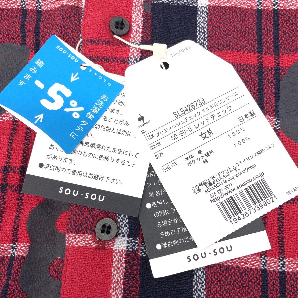 ●新品 le coq sportif×sou sou ルコック ソウソウ 定価14,800円 ブリティッシュチェック バイクワンピース M 赤系 自転車 日本製 未使用