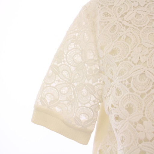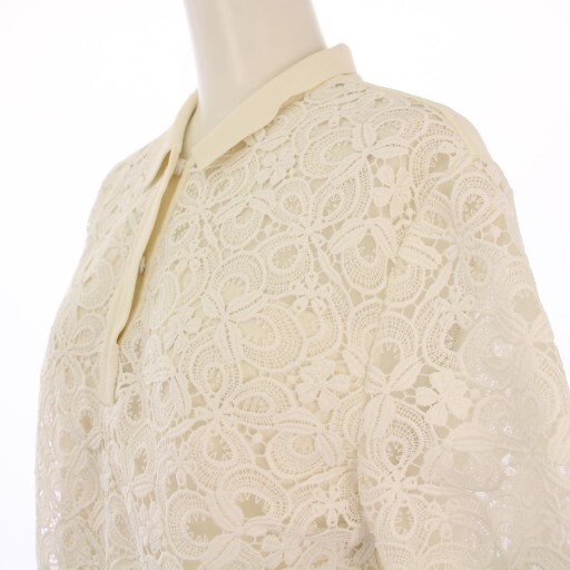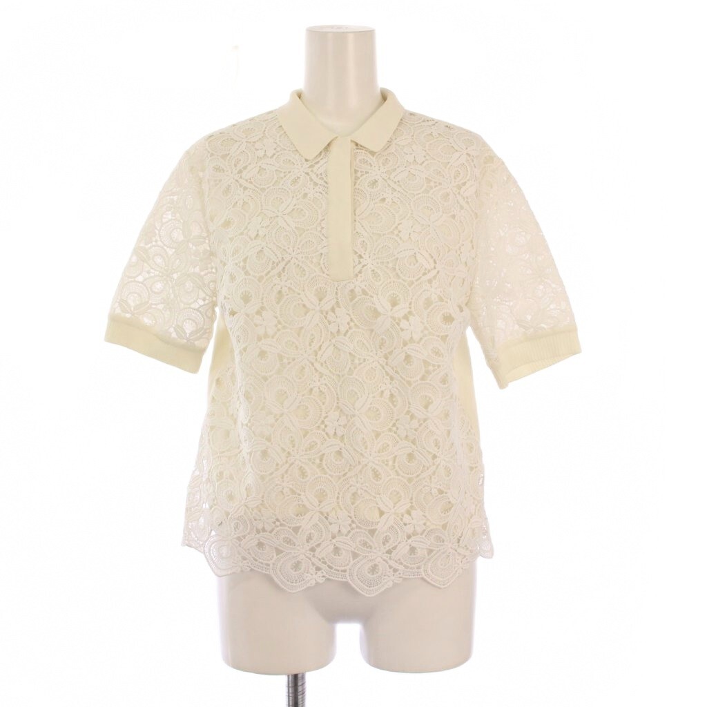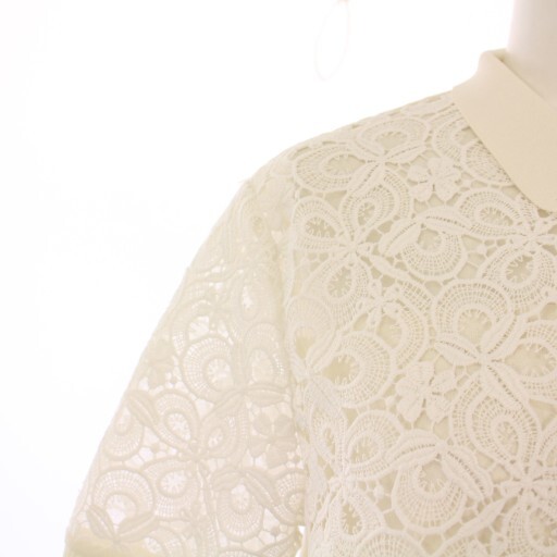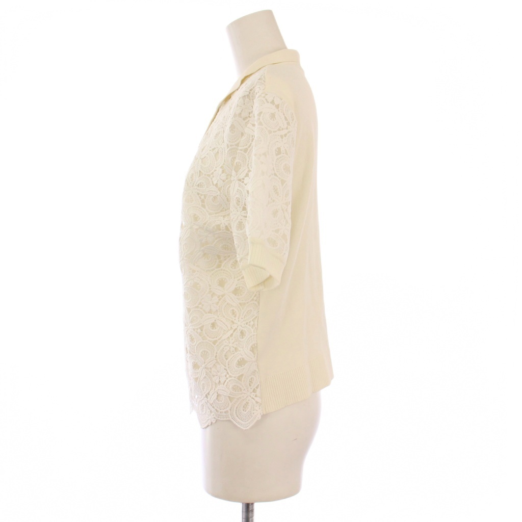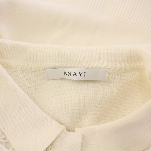 アナイ ANAYI ポロシャツ 半袖 レギュラーカラー ハーフボタン レース 刺繍 切替 バイカラー 38 白 ホワイト アイボリー /BB レディース