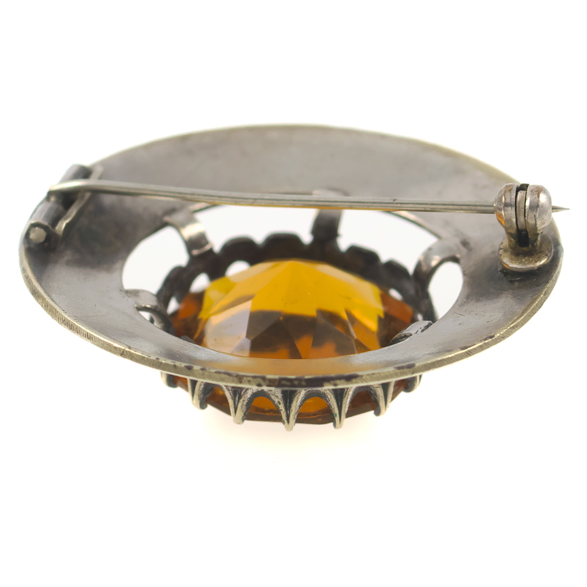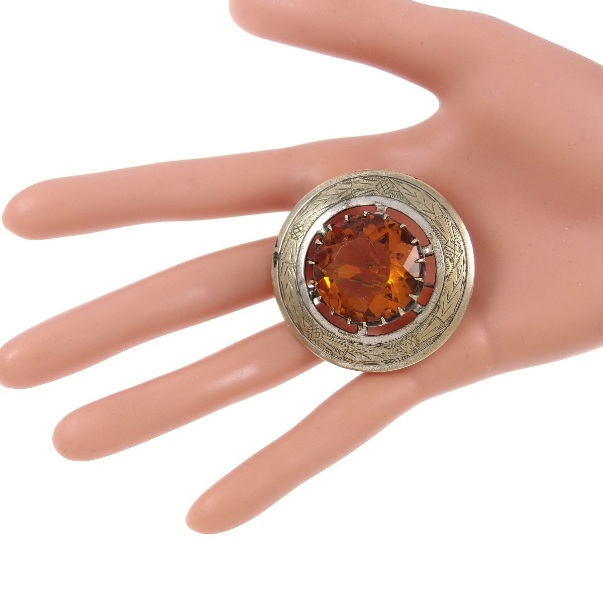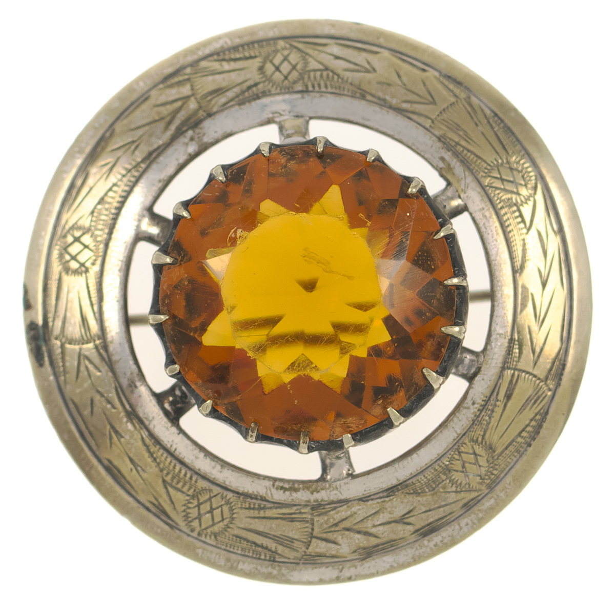 UK4205◆ ラウンド アザミの花 アンバー系ストーン フラワーモチーフ ケルト 色石 イギリス 英国 ◆ ヴィンテージブローチ ◆