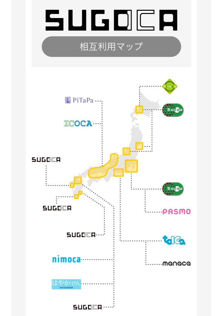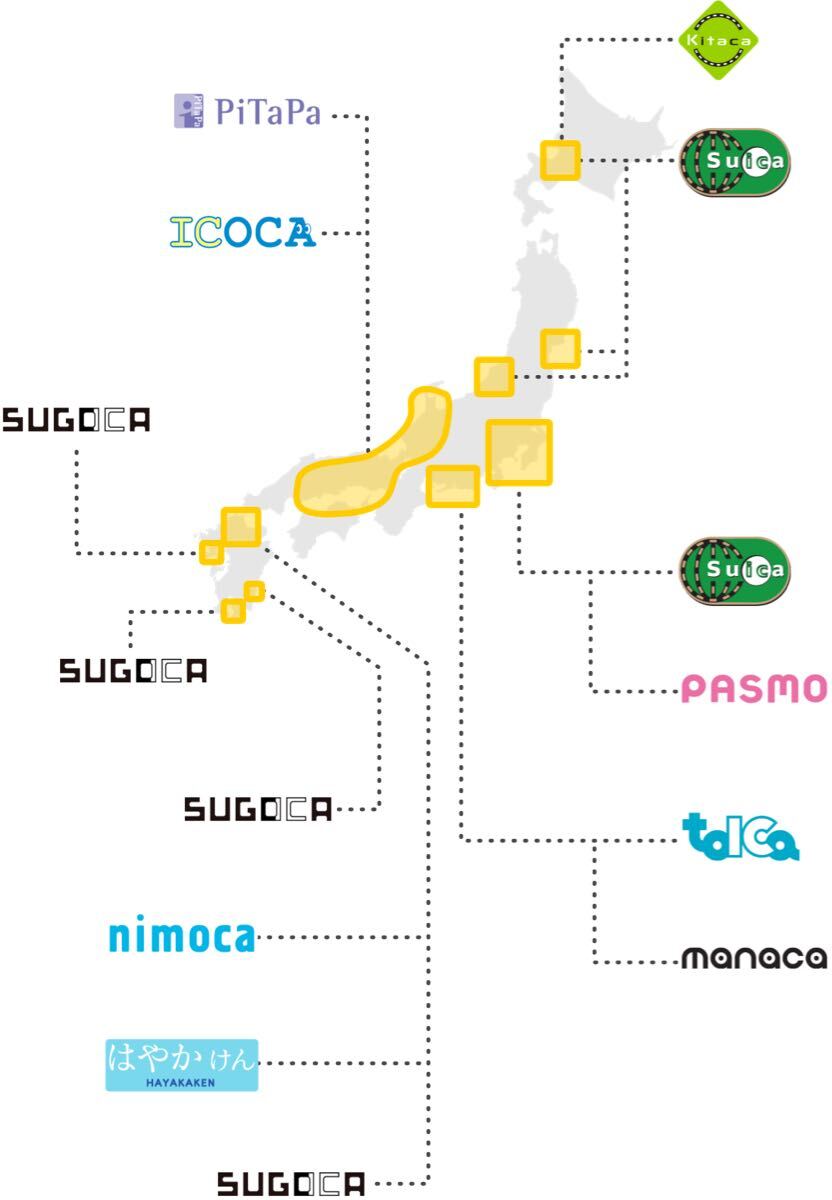 全国共通交通系ICカードとなりますので、現在交通系ICカードが販売されていないSuicaやPasmoを含む、マナカ、TOICA、Kitaca、PASMO、ICOCA、はやかけん、nimoca、SUGOCA圏や一部の地方版交通系ICカードエリアでもお使いいただけます。