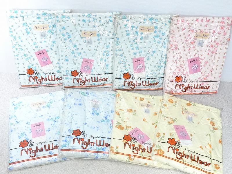 80NW05▲【未使用】昭和レトロ ネグリジェ Mサイズ 花柄 8点まとめて パジャマ ナイトウェア ナイティ 寝巻 部屋着