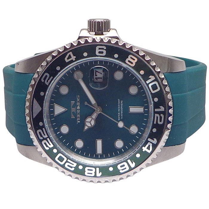 | ・文字盤:グリーン ・インデックス:シルバー&ホワイト(蓄光部) ・針:シルバー&ホワイト(蓄光部) ・ベゼル:外枠:シルバー/グリーン(目盛り:シルバー) ・ケース:シルバー ・リューズ:シルバー ・裏蓋:シルバー ・ベルト:グリーン ・尾錠:シルバー |