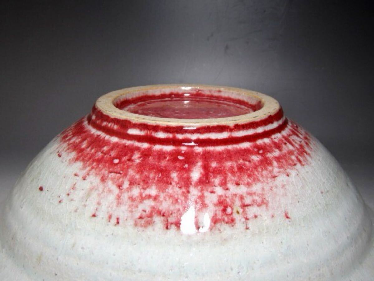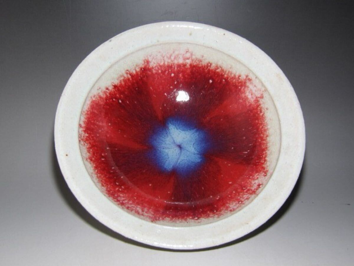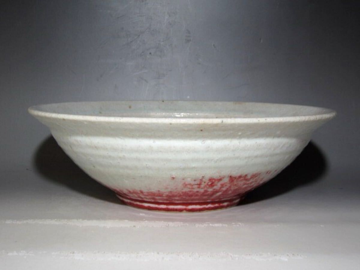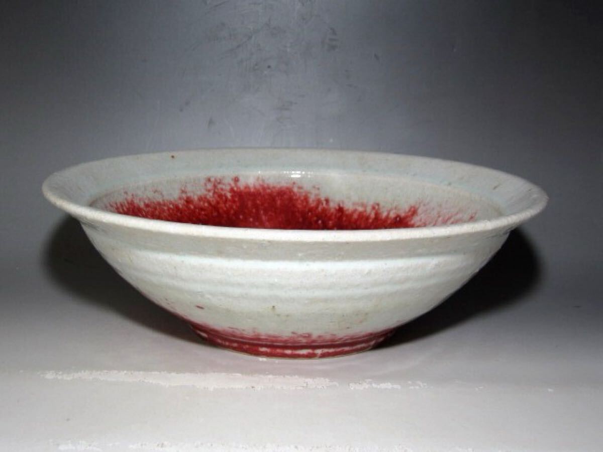 河井寛次郎作の辰砂鉢です。 美しい景色の風合い見事な作品です。 【河井寛次郎(かわいかんじろう)1890-1966】 師弟関係を重んじる陶工の世界にあって、学校という教育機関にて指導を受けた新しい世代の陶工となる。 釉薬の研究や、中国陶磁など過去の陶磁の模倣や研究も行い、京都の五条坂(現在の「記念館」の地) に窯を築き、鐘渓窯と名付けて独立。 サイズ 直径27.5cm/高さ9cm(多少の誤差はお許しください) 状態 一見して疵やヒビ・直しは見られません。 骨董品という事をご勘案頂き、時代経過のスレや、小さな傷がある場合があるかもしれませんのでご承知置きください。 | |||
