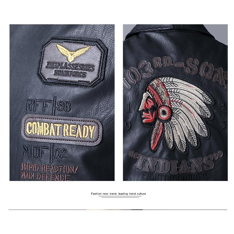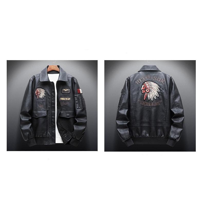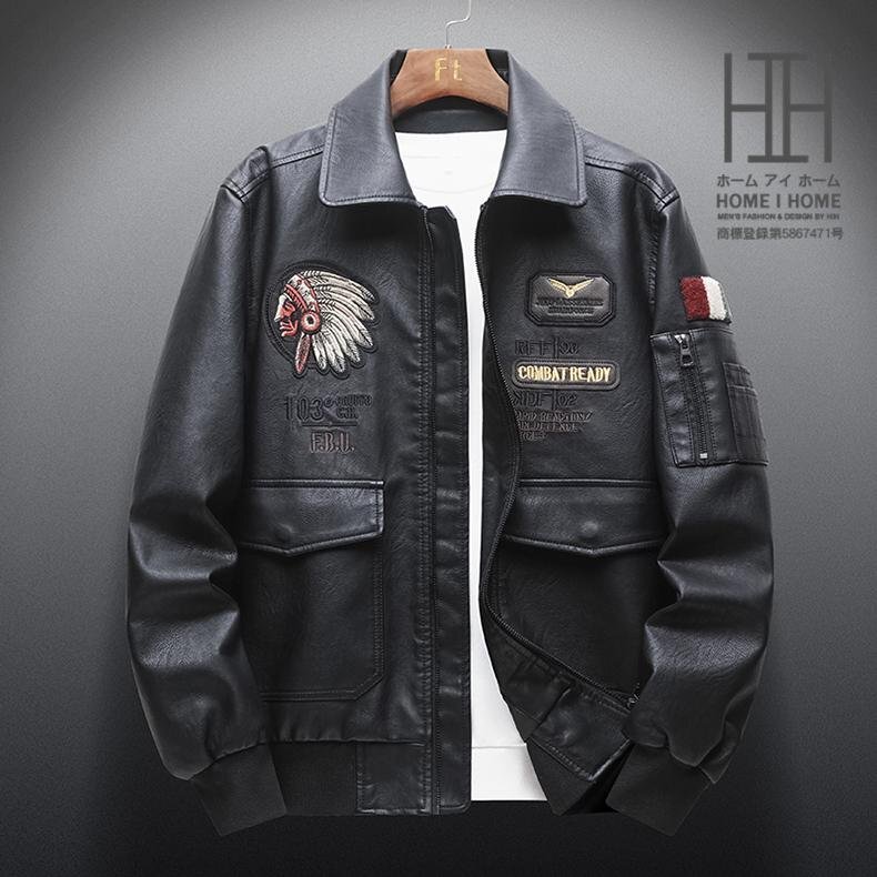 革ジャン メンズ PU レザー 襟付き 刺しゅう入り ライダースジャケット マーク ワッペン おしゃれ 個性 ビター系 春 秋