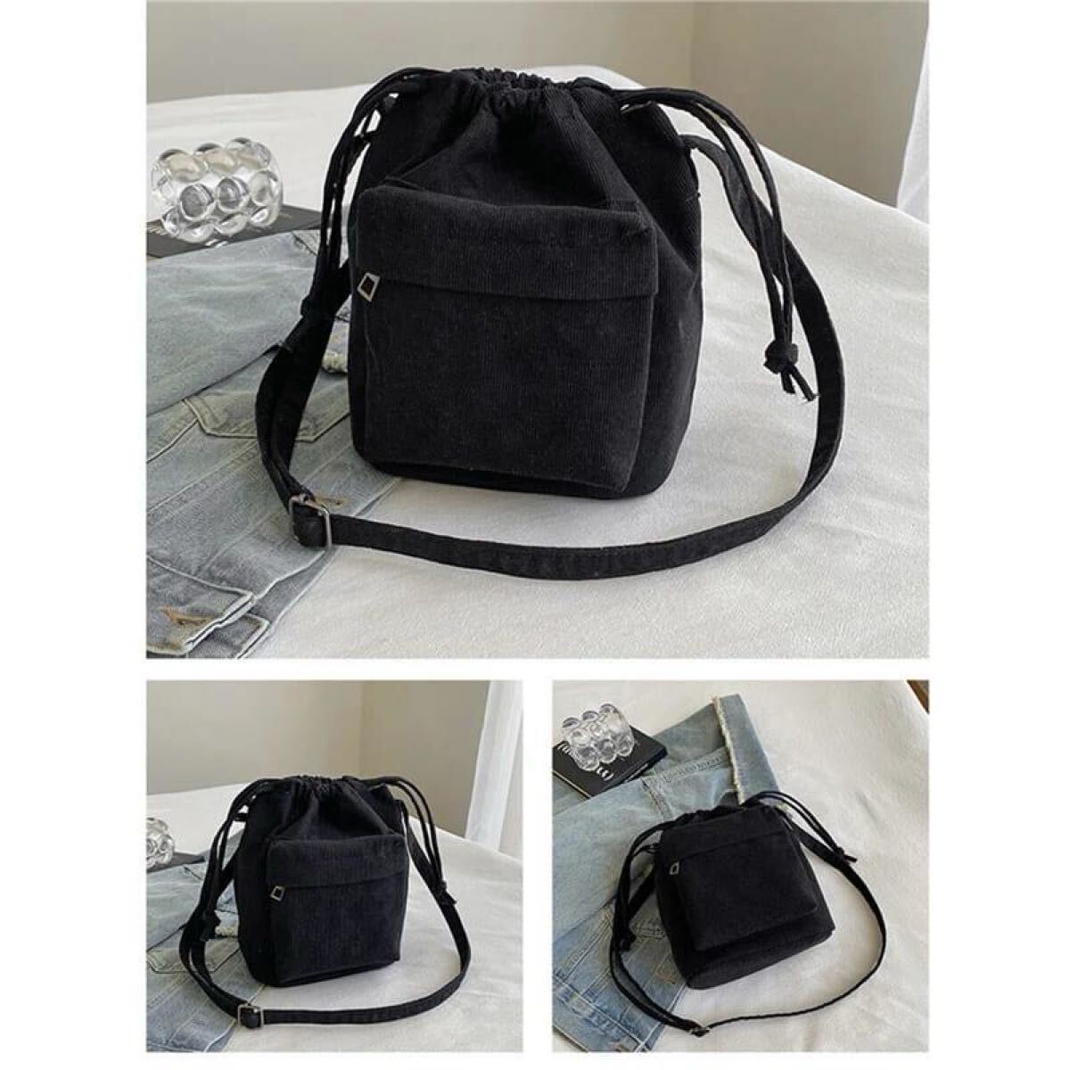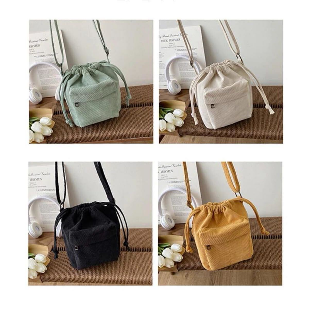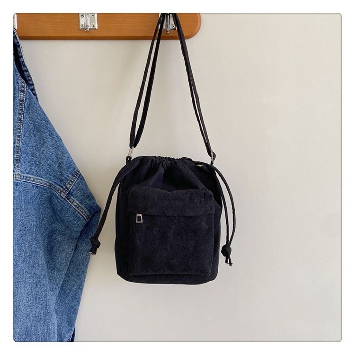 秋冬にぴったりなコーデュロイ素材の巾着ショルダーバッグ