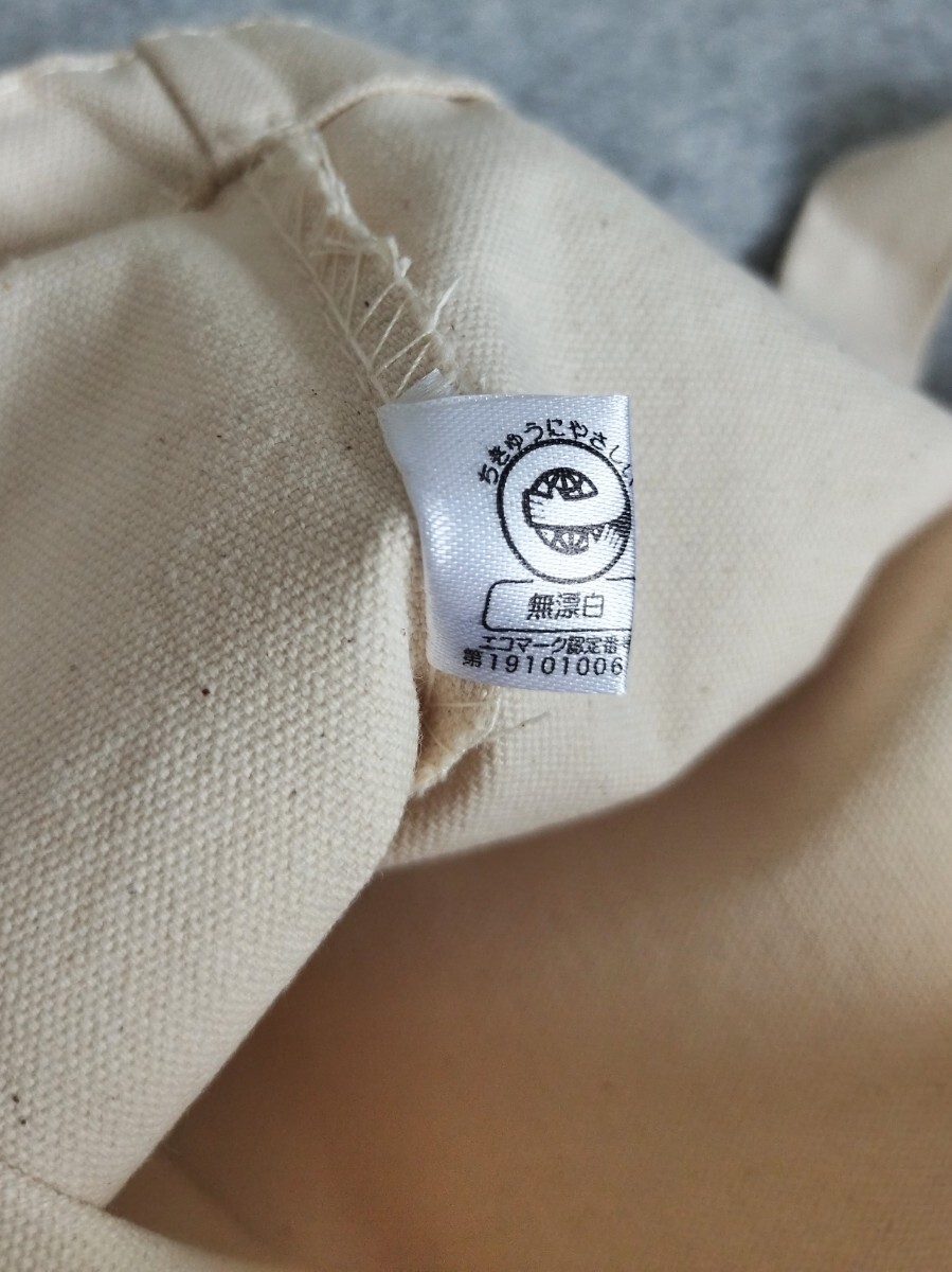 しっかりした丈夫なキャンバス地。綿のようです。重い物を入れても大丈夫。永くお使い頂けます。地球に優しい無漂白のエコ製品。
