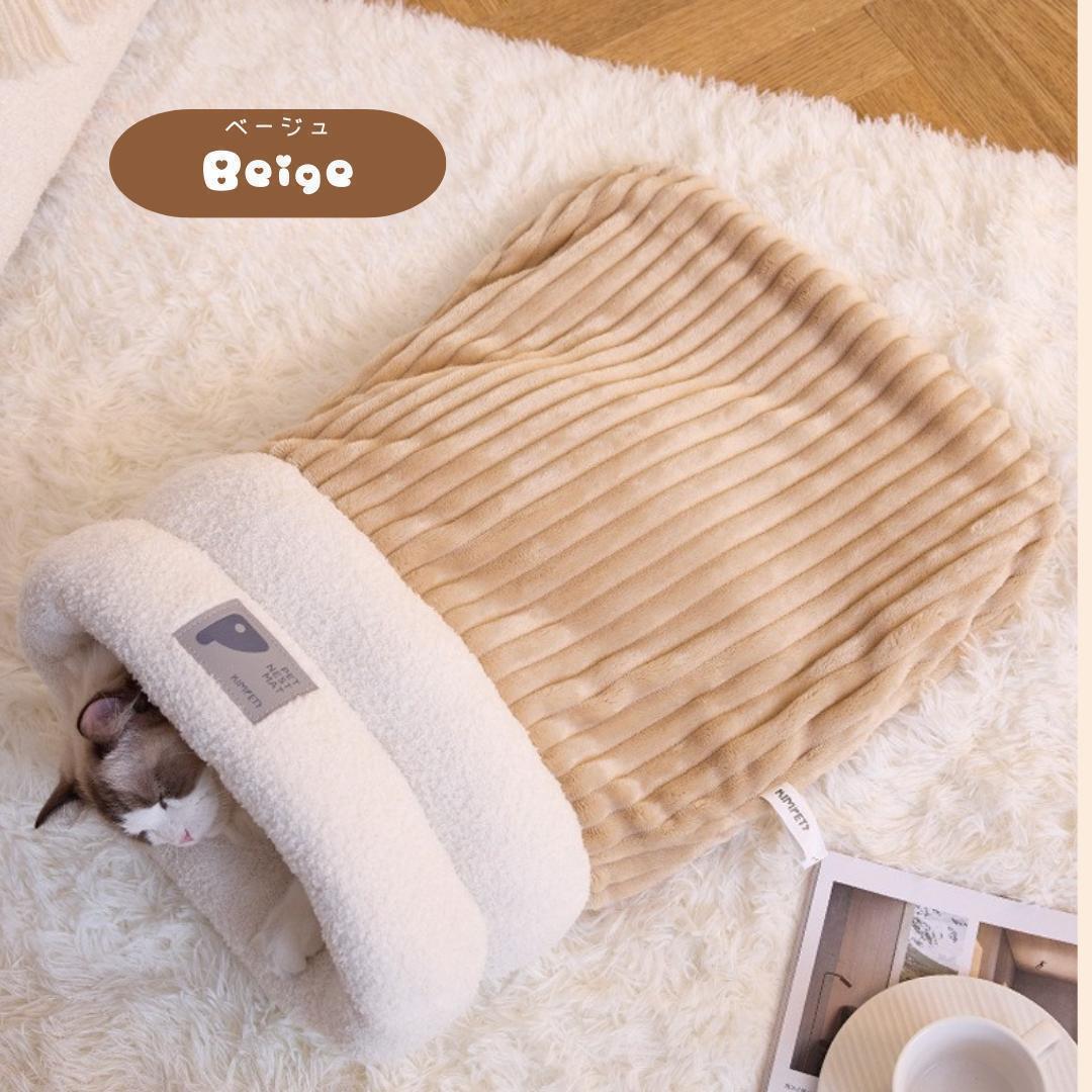 2WAYで使える筒型のふわふわペットクッション&寝袋♪ 密封式デザインで安心感抜群。冬の寒い夜や冷え込む季節も、ポカポカの素材でぐっすり快適な眠りをサポートします。