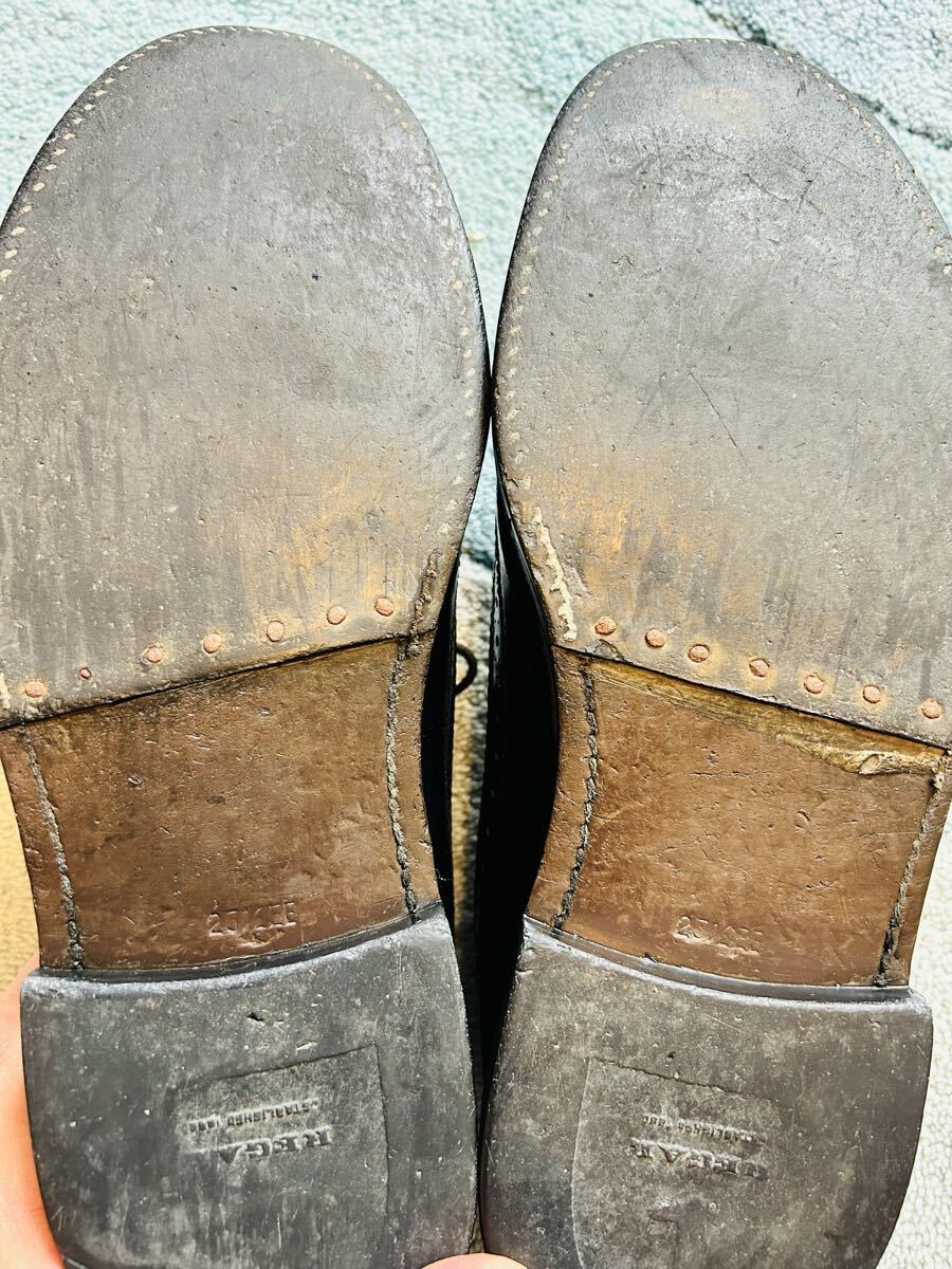 数ある商品の中からご覧頂き誠にありがとうございます! 商品名 リーガル タイプ ウイングチップ サイズ 25.5EE カラー ブラック 状態 レベルは3 【5】新品に近い美品状態 【4】履きジワ・カカトの減りも少なく綺麗な状態 【3】一般的な中古品レベルの状態 【2】履きジワ・カカトの減りもある状態 【1】ボロボロ どんなシーンでも対応できるブラックのウイングチップになります。メダリオンの華やかさが足元をドレッシーに仕上げてくれます(^^)一足は持っておきたいですね♪ 使用感ありますが、靴紐も新品に交換、かかとの補修もしてあり普段使いには問題ないレベルです。アッパー、ソール共に良好です。 シューキーパーは付属しませんのでご了承下さい。 不明点ございましたらご質問下さい。 | |||